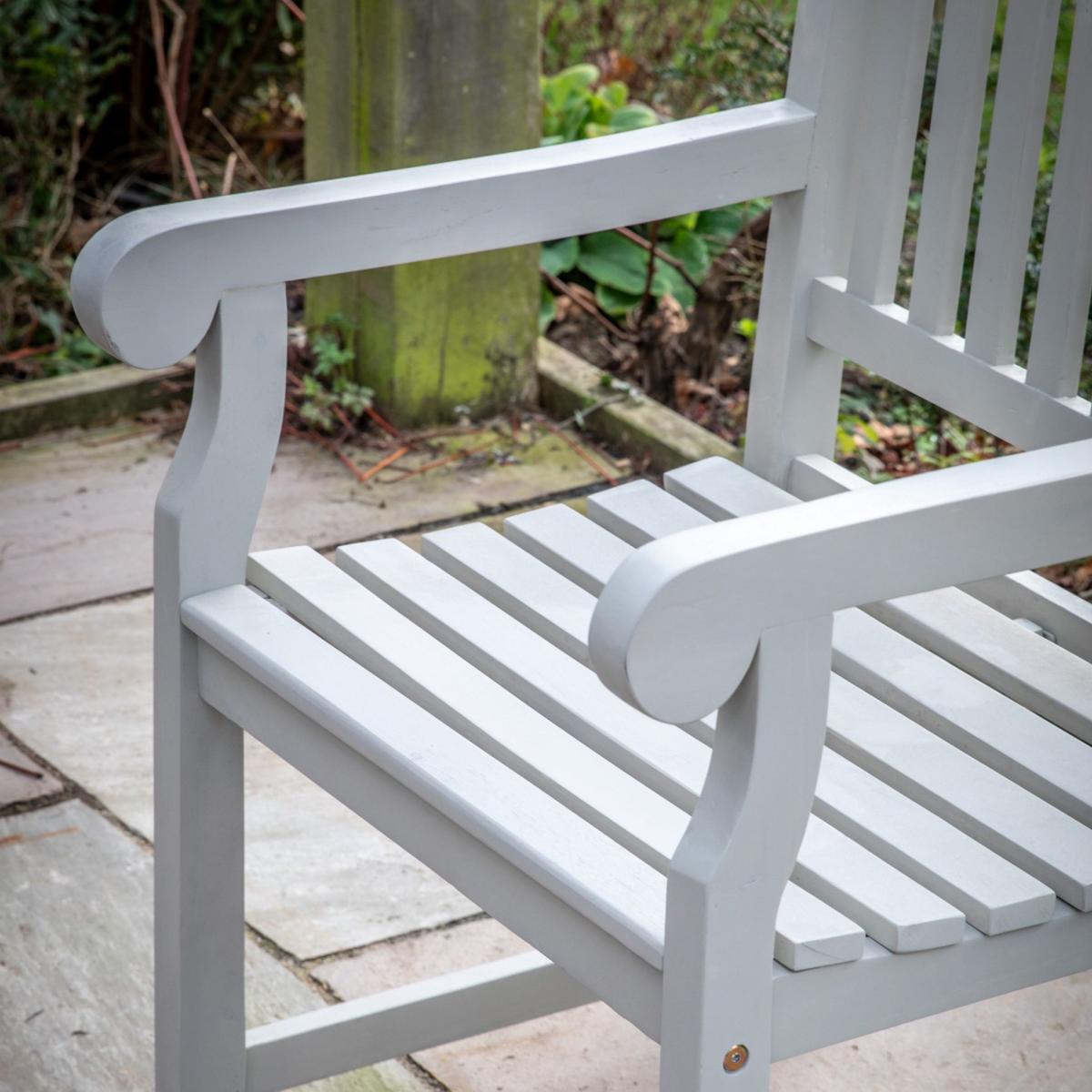 This Bench Chair offers a bench-style design, but as an individual chair. It looks fantastic paired with our matching 2 Seater Bench. The chair is crafted from acacia wood with a natural-look painted finish. The bench is also available in a whitewashed finish. It is part of a collection of outdoor furniture which offers a great range of pieces, so you can select the ones to suit your requirements.