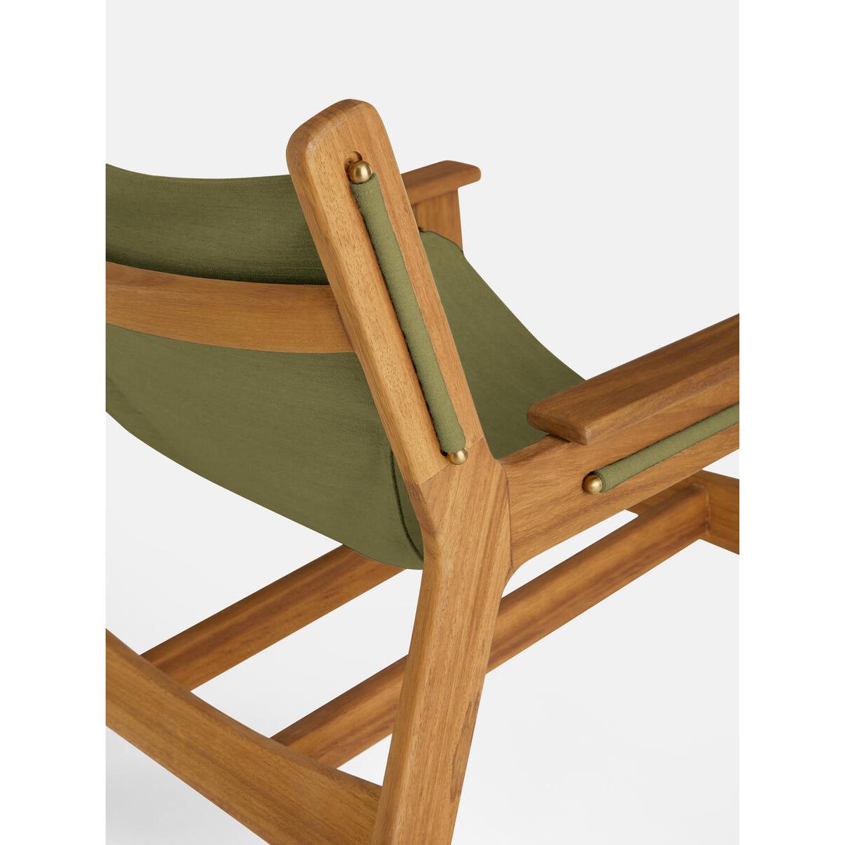 Referencing Barcelona's Little Beach House, the Gilberto chairis a vintage-inspired slung seat crafted from solid iroko. Antiquebrass detailing adds a subtle warmth - a great piece for gatheringfriends and family outside. Solid iroko chair. Antique brass detailing. Suitable for outdoor use. Inspired by Little Beach House Barcelona.