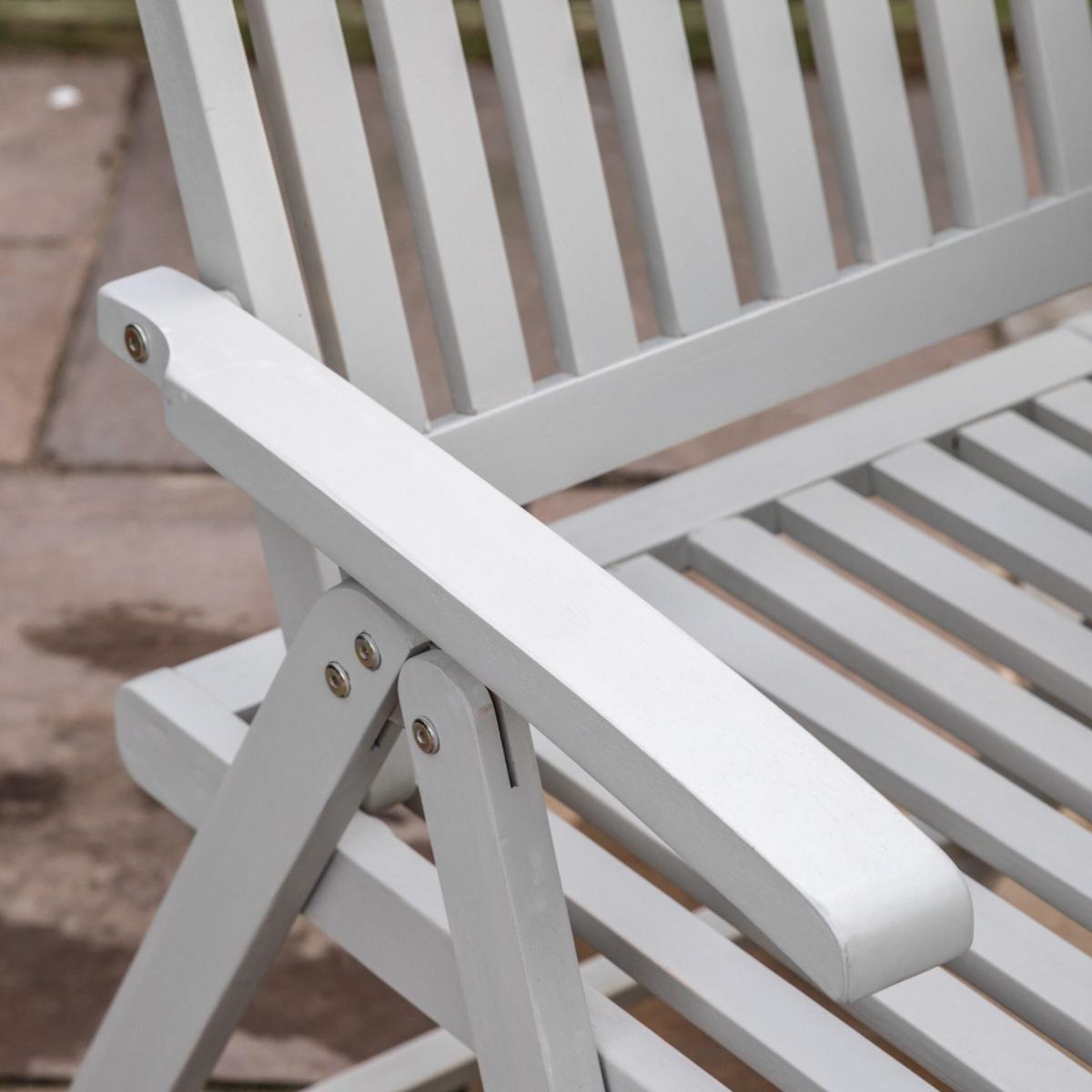This lovely Folding Armchair Whitewashed offers a stylish solution for outdoor dining, with the added practicality of folding for easy storage. It is ideal for use with the matching extending dining table, but could also be used with other outdoor tables. The chair is crafted from acacia wood with a whitewashed painted finish. The armchair is also available in a natural-look finish. It is part of a collection of outdoor furniture which offers a great range of pieces, so you can select the ones to suit your requirements.