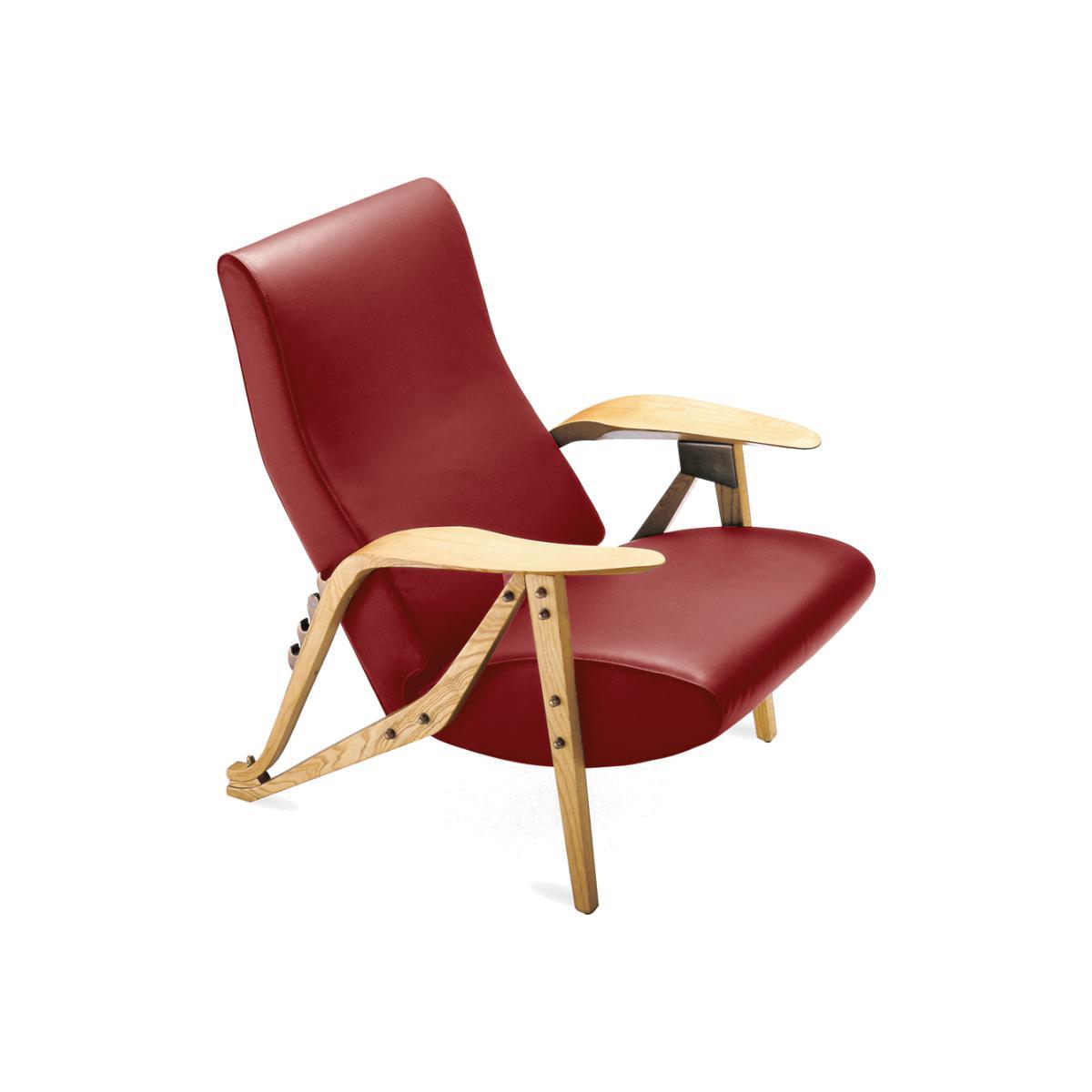 Part of an eccentric yet elegantly contemporary collection by Carlo Mollino for Zanotta in 1954, the Gilda Armchair showcases a Pelle Nappa leather upholstered ergonomic seat and back, enhanced by fluid lines of oak dyed ash wood that make up the frame. Featuring a four-position adjustable back rest, the Gilda Armchair delivers contemporary aesthetics with a functional twist, customisable to the sitter's preferences. Upholstered in full-grained, chrome tanned Pelle Nappa leather, the beautifully soft textile enhances the lines of the design with a touch of subtle opulence, complementing the oak dyed ash wood structure. Mollino's ground-breaking aesthetic is perfectly exemplified by the Gilda Armchair in leather and oak dyed ash; a design classic manufactured to exacting standards by Zanotta, Gilda would make an informed addition to your living space.