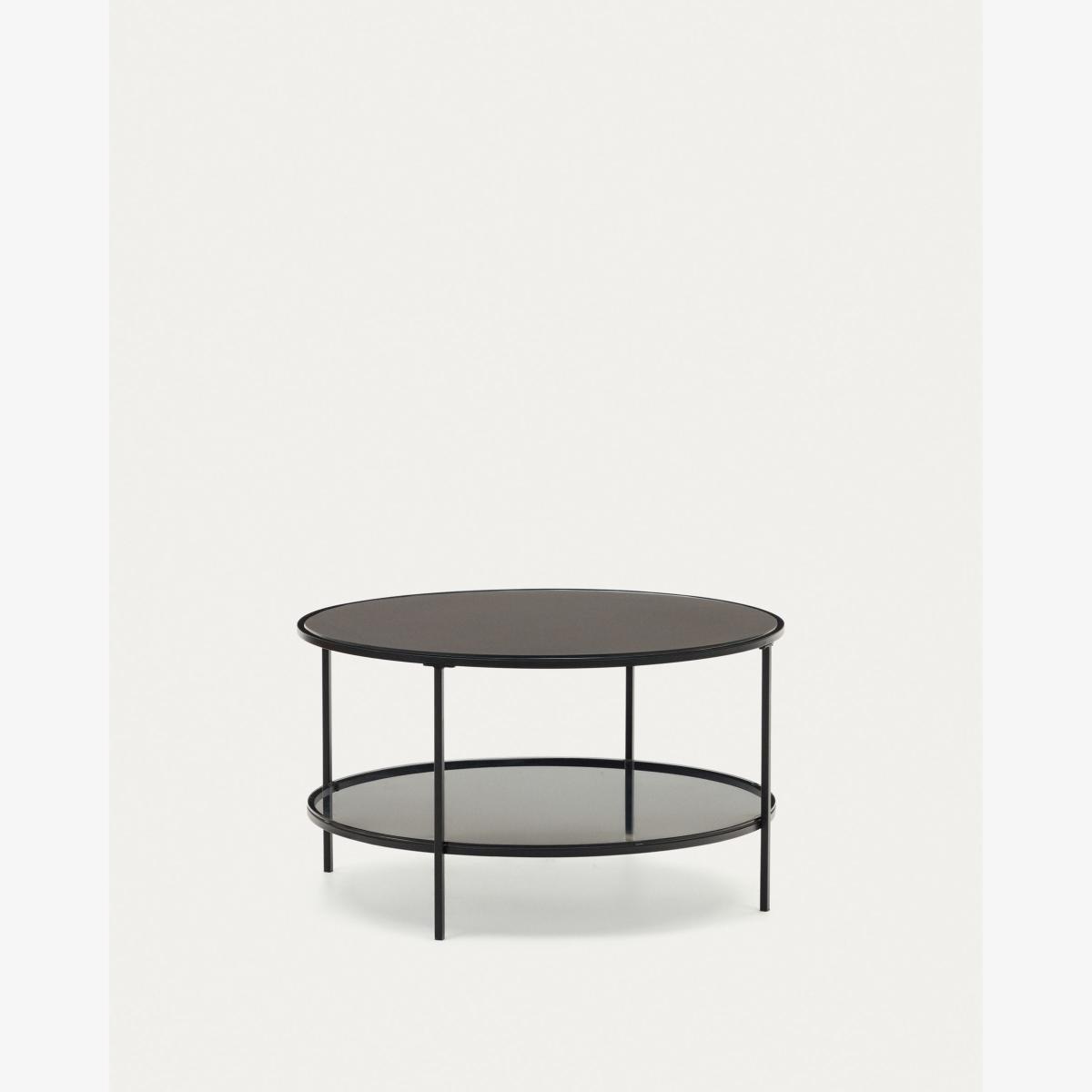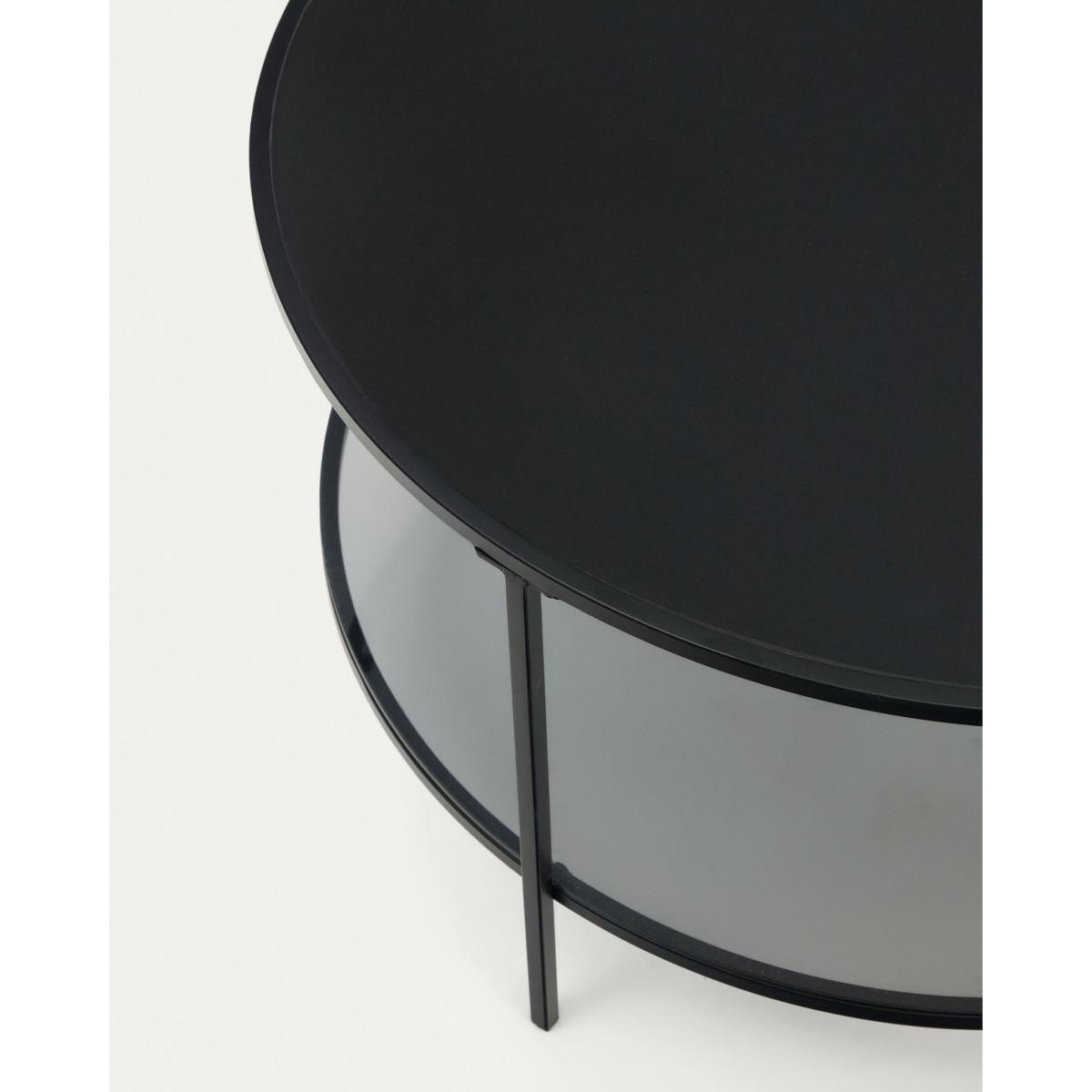 Gilda tempered glass and metal coffee table with a matte black finish, Ø 80 cm