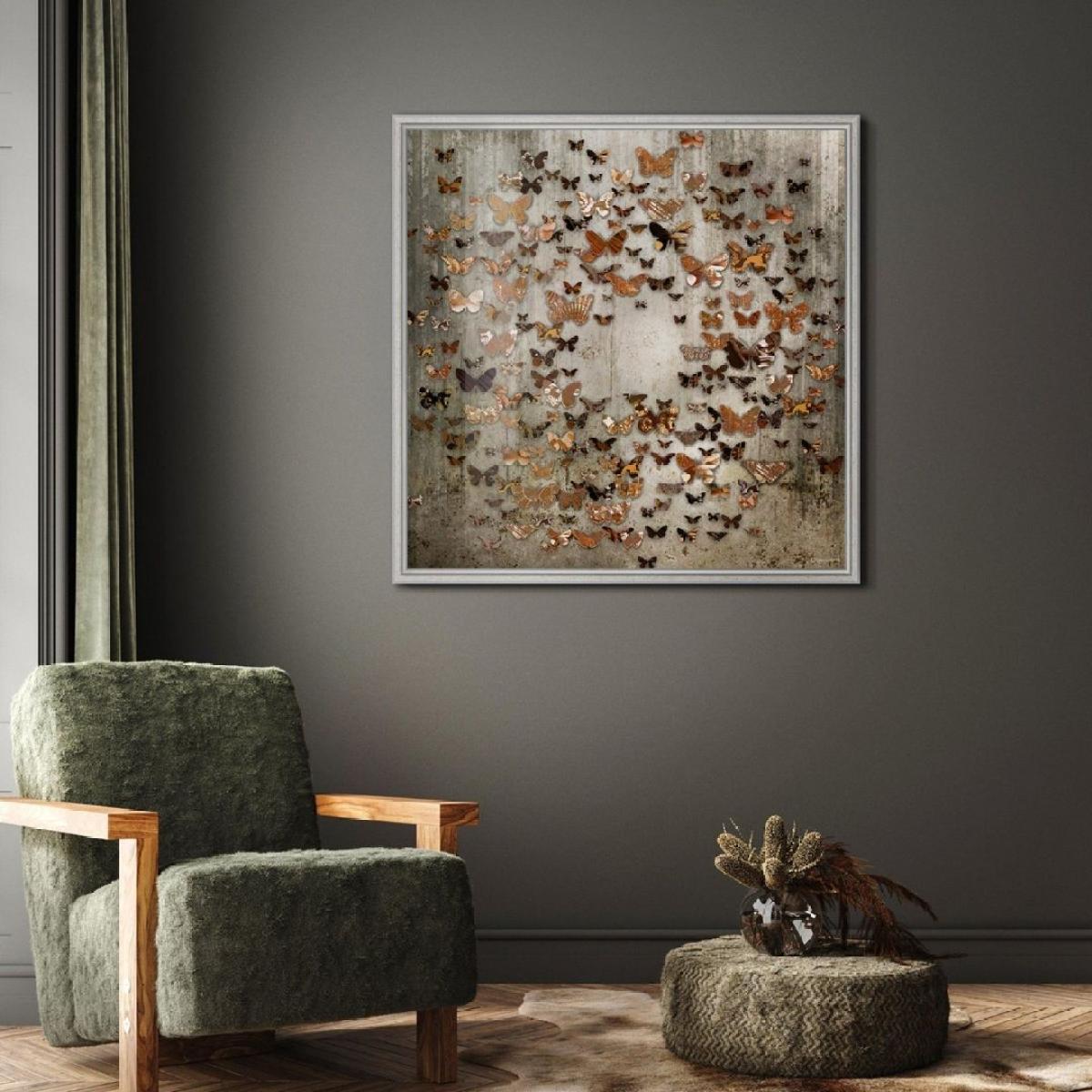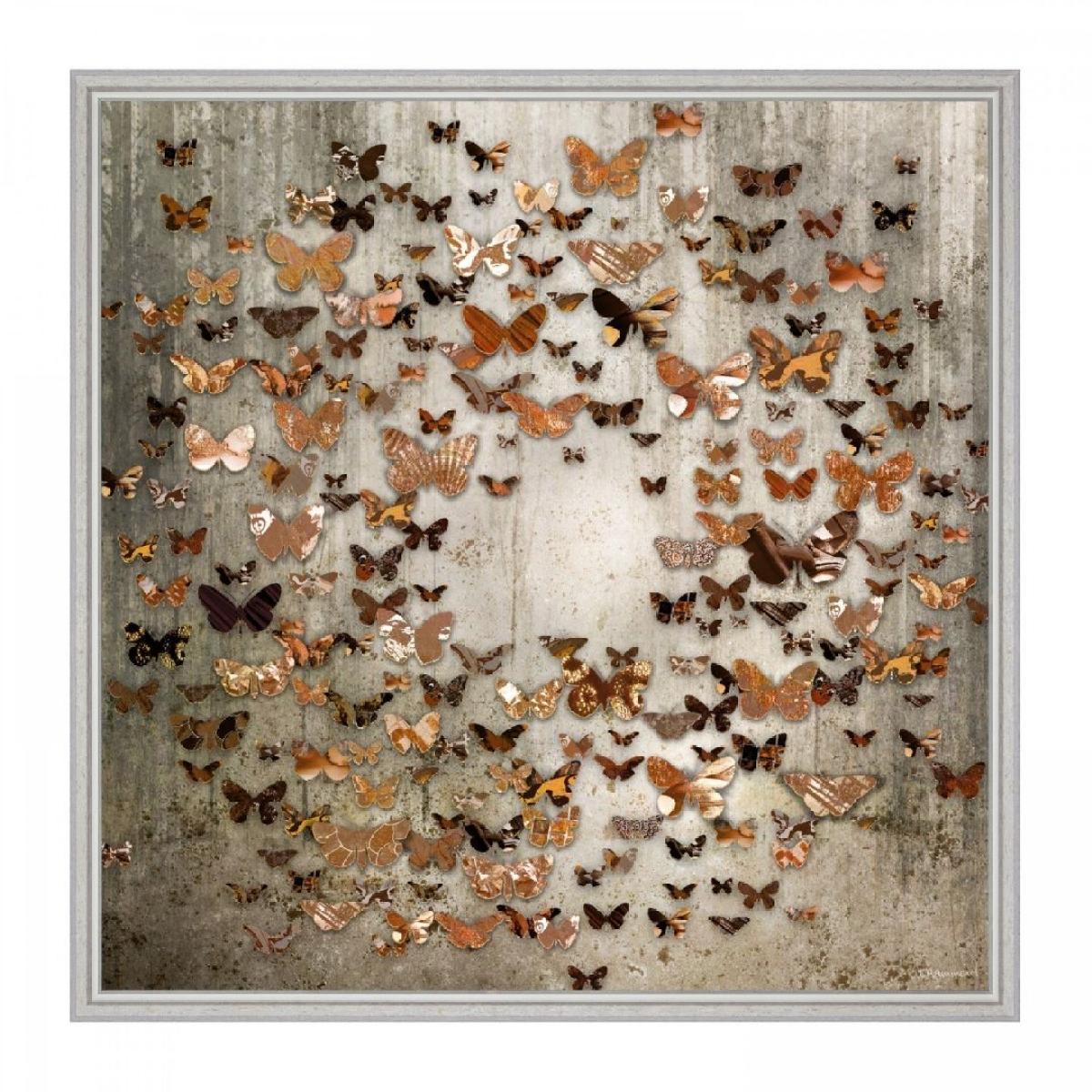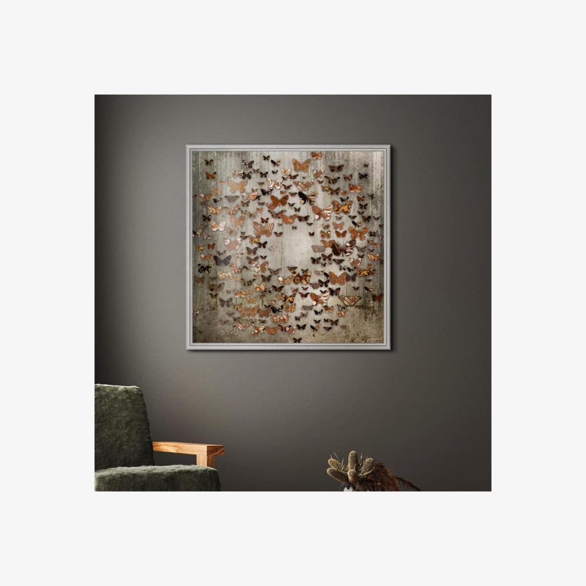 By Ulyana Hammond, a framed artwork featuring die-cut, raised and foiled paper butterflies in copper, bronze and gold arranged on a grey background. Paired with a grey wood-effect frame. Bring elegance and texture to your decor with by Ulyana Hammond, a captivating framed artwork that celebrates the beauty of nature. Featuring intricately raised and foiled paper butterflies in rich tones of copper, bronze and gold, this piece evokes the warmth and splendor of autumn. The butterflies are artfully arranged on an aged grey background, creating a striking contrast that enhances their shimmering metallic details against the industrial foundation. Framed in a grey wood-effect frame that complements the artwork’s tones, is a stunning addition to any living space, bedroom or hallway. Its blend of intricate craftsmanship and sophisticated design makes it a gorgeous statement piece for your home. By Ulyana Hammond, a framed artwork featuring die-cut, raised and foiled paper butterflies in copper, bronze and gold arranged on a grey background. Paired with a grey wood-effect frame. Bring elegance and texture to your decor with by Ulyana Hammond, a captivating framed artwork that celebrates the beauty of nature. Featuring intricately raised and foiled paper butterflies in rich tones of copper, bronze and gold, this piece evokes the warmth and splendor of autumn. The butterflies are artfully arranged on an aged grey background, creating a striking contrast that enhances their shimmering metallic details against the industrial foundation. Framed in a grey wood-effect frame that complements the artwork’s tones, is a stunning addition to any living space, bedroom or hallway. Its blend of intricate craftsmanship and sophisticated design makes it a gorgeous statement piece for your home.