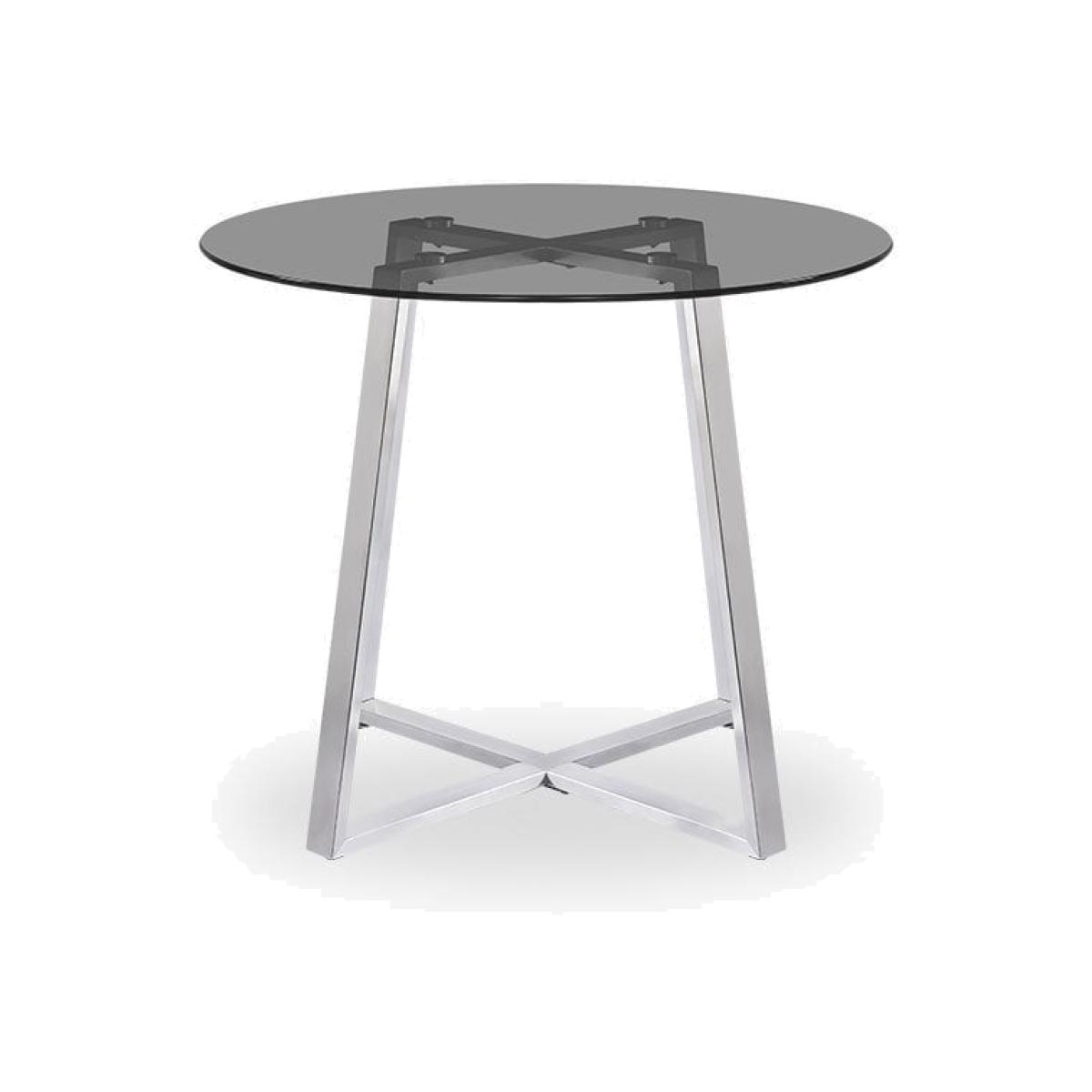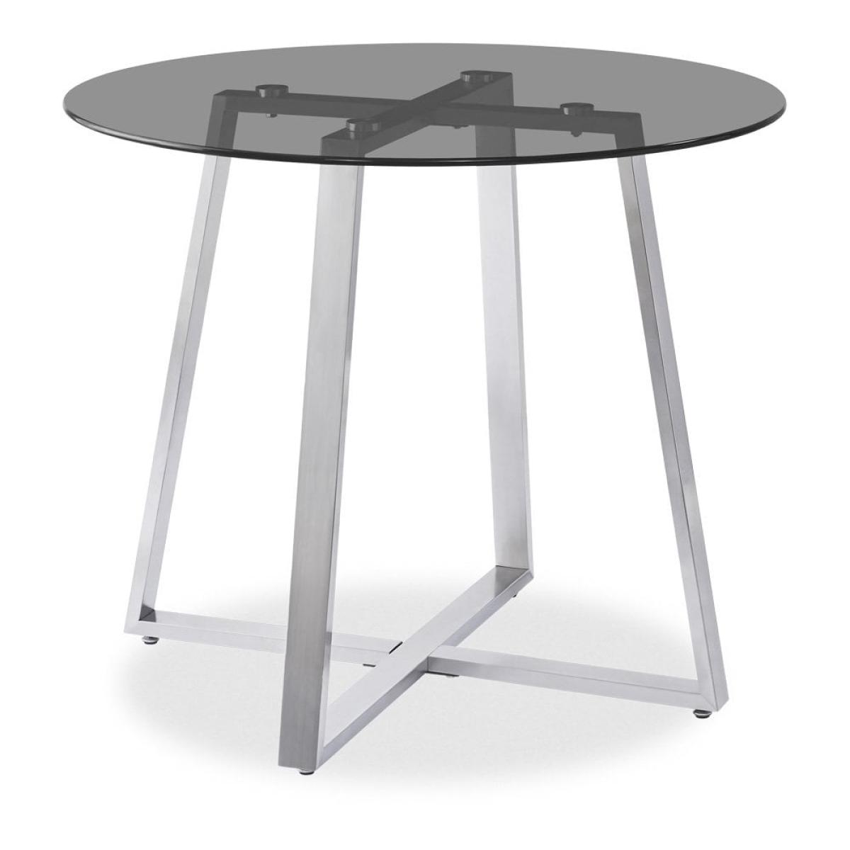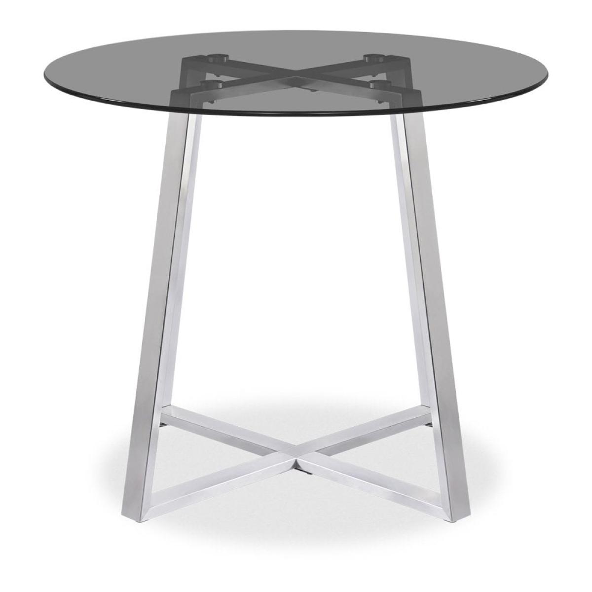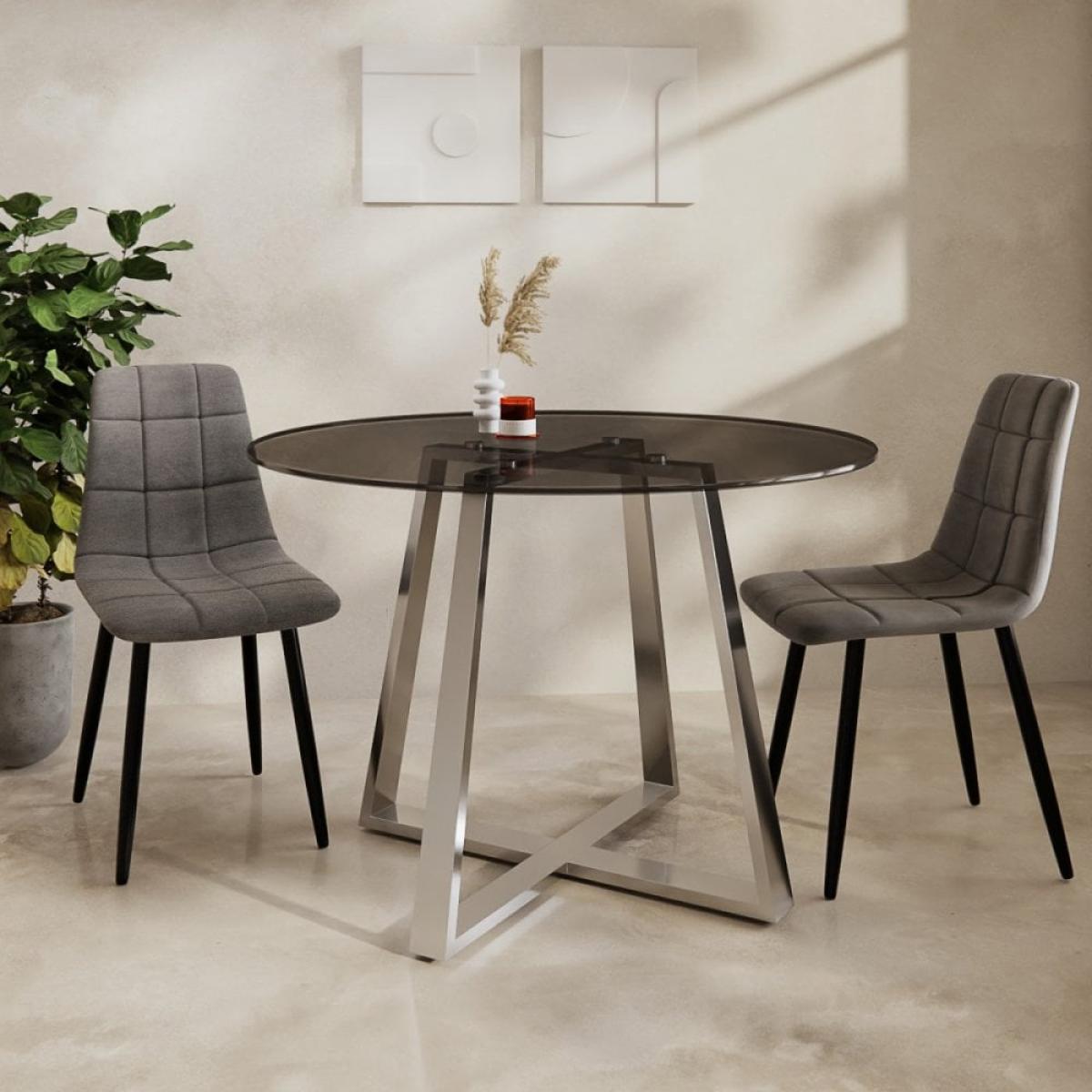 Giles 2 Seat Round Dining Table, Brushed Metal & Smoked Grey Glass