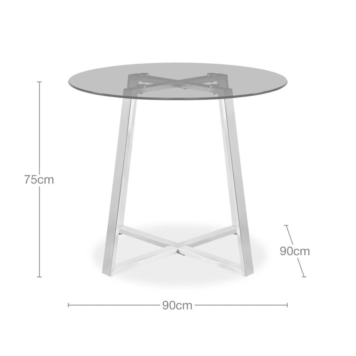 Gather around the Giles dining table for 2. With a round smoked glass top and a sleek, criss-cross brushed metal base the Giles is a sculptural focal point for your kitchen or dining room. Showcasing a contemporary design that will add an elegant touch to your dining space.