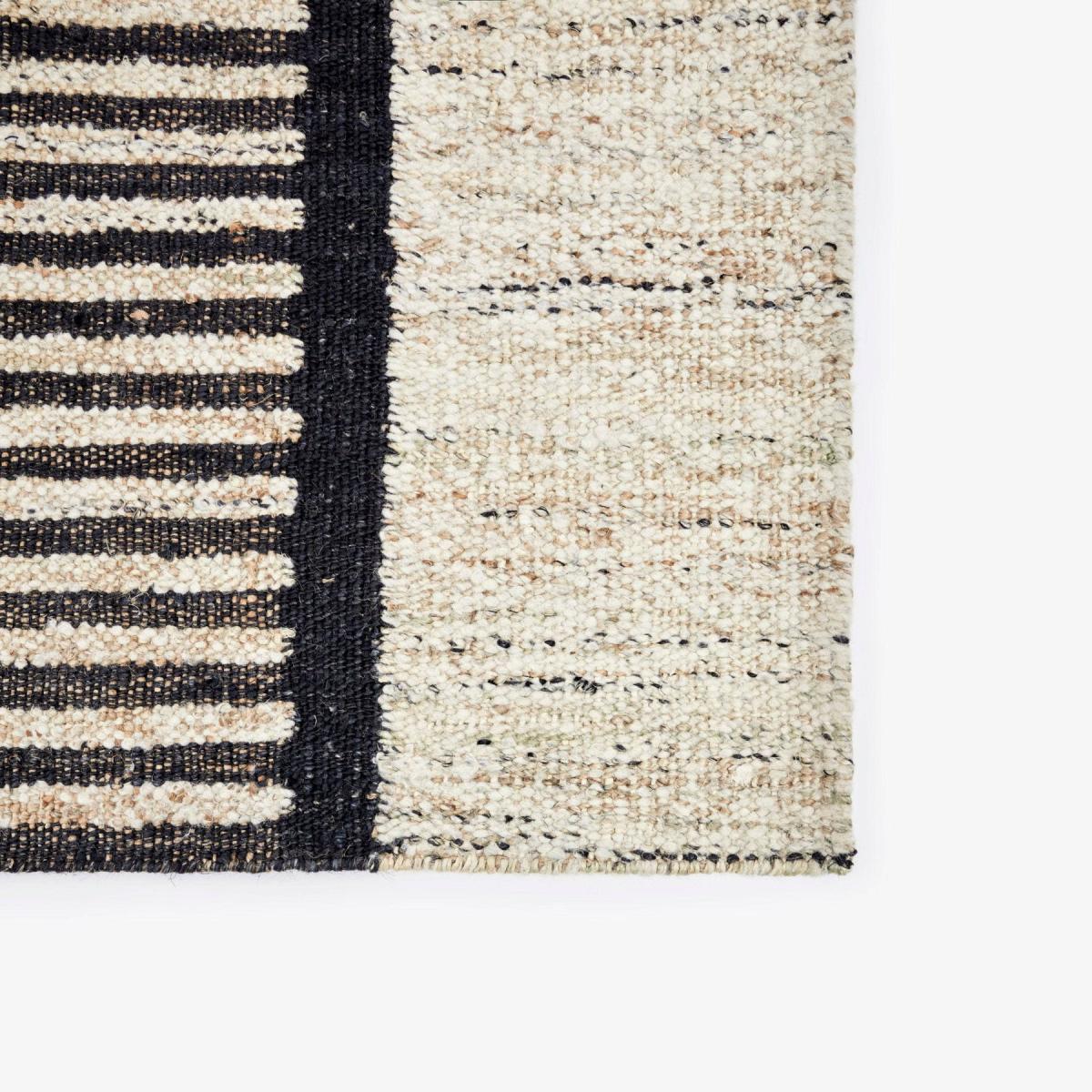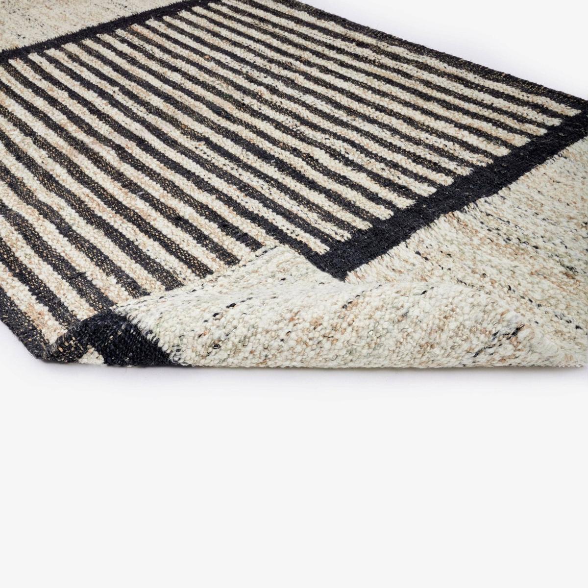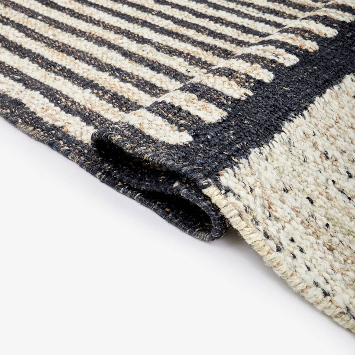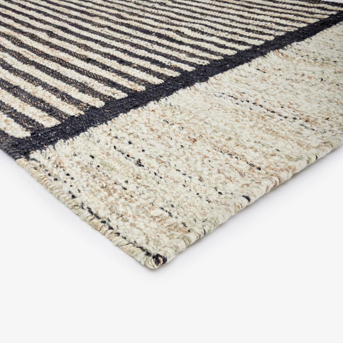 Embrace comfort with the Gillen rug. Beautifully handwoven from jute and wool, this elegant dhurrie has geometric patterns that bring a space together in a cohesive manner. In Gillen, the subtle beige and charcoal colours beautifully offset one another to create a sophisticated, easy-to-style look. The perfect way to add warmth to your living space, this versatile punja kelim translates from stylish to cosy. Bring your home to life with Gillen's eye-catching floor covering and embrace its sustainability and craftsmanship.