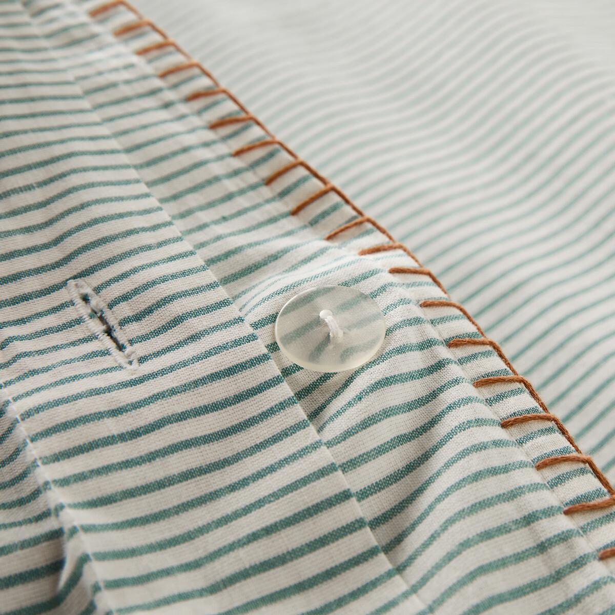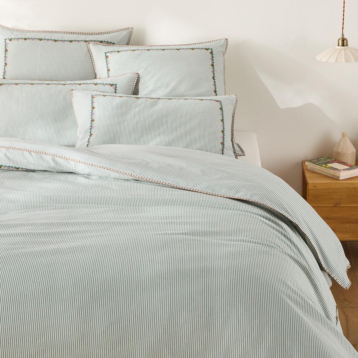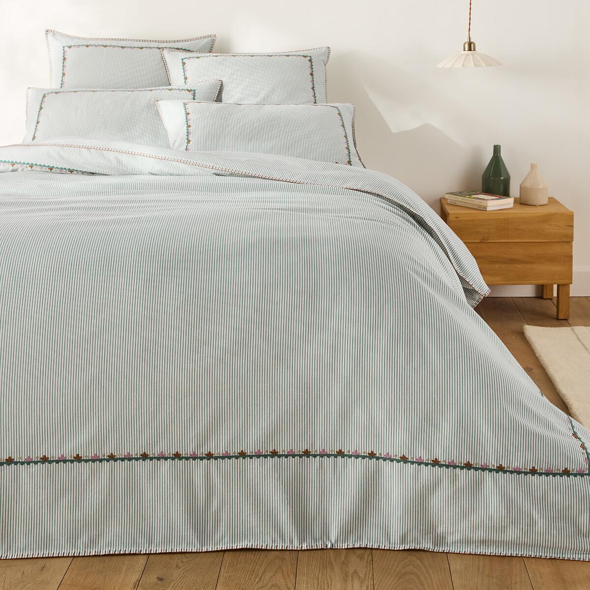 Decorative garland embroidered on a delicate yarn-dyed striped background, in an elegant, natural country style. The Gillian duvet cover in washed cotton is finished with blanket stitching. Designed by La Redoute Intérieurs. The washed cotton has been delicately bleached during its manufacture. Soft, supple and comfortable, it softens over time. Its slightly wrinkled appearance is incredibly on-trend, and it does not require ironing. Product Details • 100% cotton • Washed cotton • Blue stripes and embroidery on the front, blue stripes on the back • Chain stitch embroidery • Stitching finish • Straight buttoned hem. As the seasons change, add your own personal touch by mixing the Gillian range with our Scenario range in plain washed cotton. Care Advice • Machine washable at 60°C • By washing your laundry at 40°C instead of 60°C, you limit energy consumption. Dimensions • 140 x 200cm: Single. • 200 x 200cm: Double. • 240 x 220cm: Double. • 260 x 240cm:Double. • OEKO-TEX® Standard 100. Standard 100 certification by OEKO-TEX® tests textile products for harmful substances via an independent, international label.