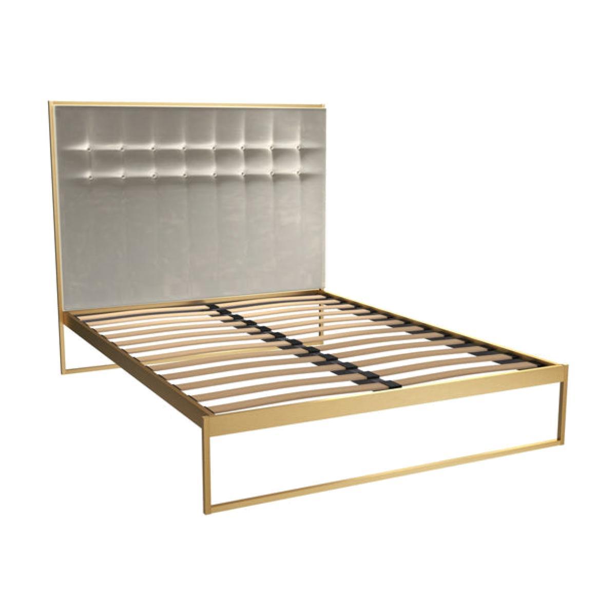 Gillmore Bed Federico Brass Frame & Mushroom Upholstered Headboard Bed / King