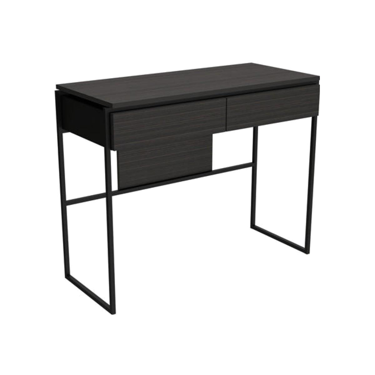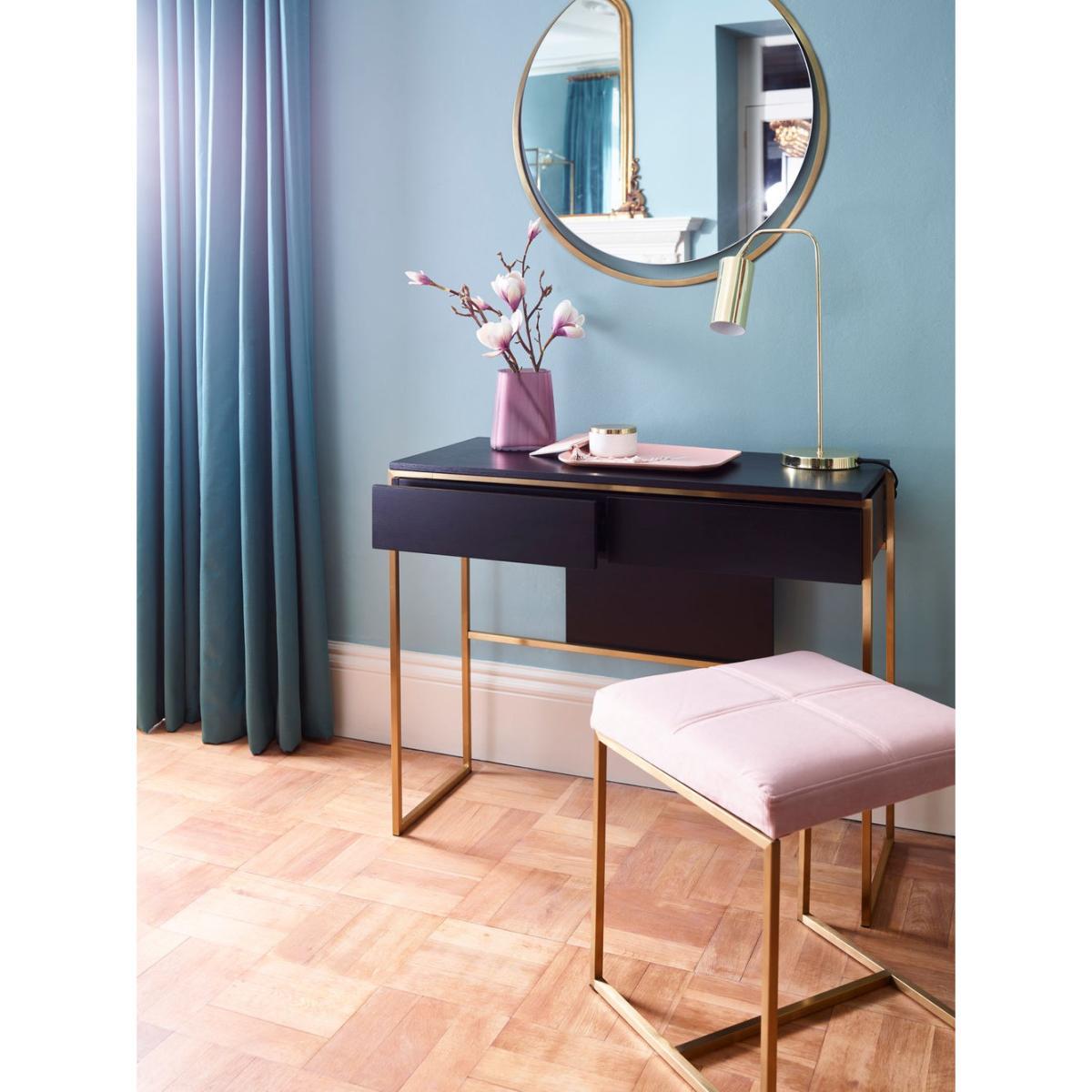 If you're looking for a dressing table with a subtle but characterful presence to complement your bedroom, then then this piece from Gillmore's Federico range of contemporary designs is perfect. It is highly compact with slim matt black powder-finished steel legs and frame. The clean lines and sharp angles of the table top, double drawers and modesty board give a pleasing orderliness to the black stained and naturally grained oak. Its light footprint helps it to blend perfectly into most surroundings, while its bold tones render it unmissable. Highly functional as well as aesthetically sophisticated it evokes both contemporary style and 1920s indulgence. *Moot Trading Ltd is not a lender and acts only as an introducer. The credit product is provided by Klarna Bank AB (publ). Credit is only available to permanent UK residents aged 18 and over, subject to status. Terms and conditions apply. Please note that the following products are not regulated by the FCA: Pay in 30 days and Pay in 3 instalments. Read More.