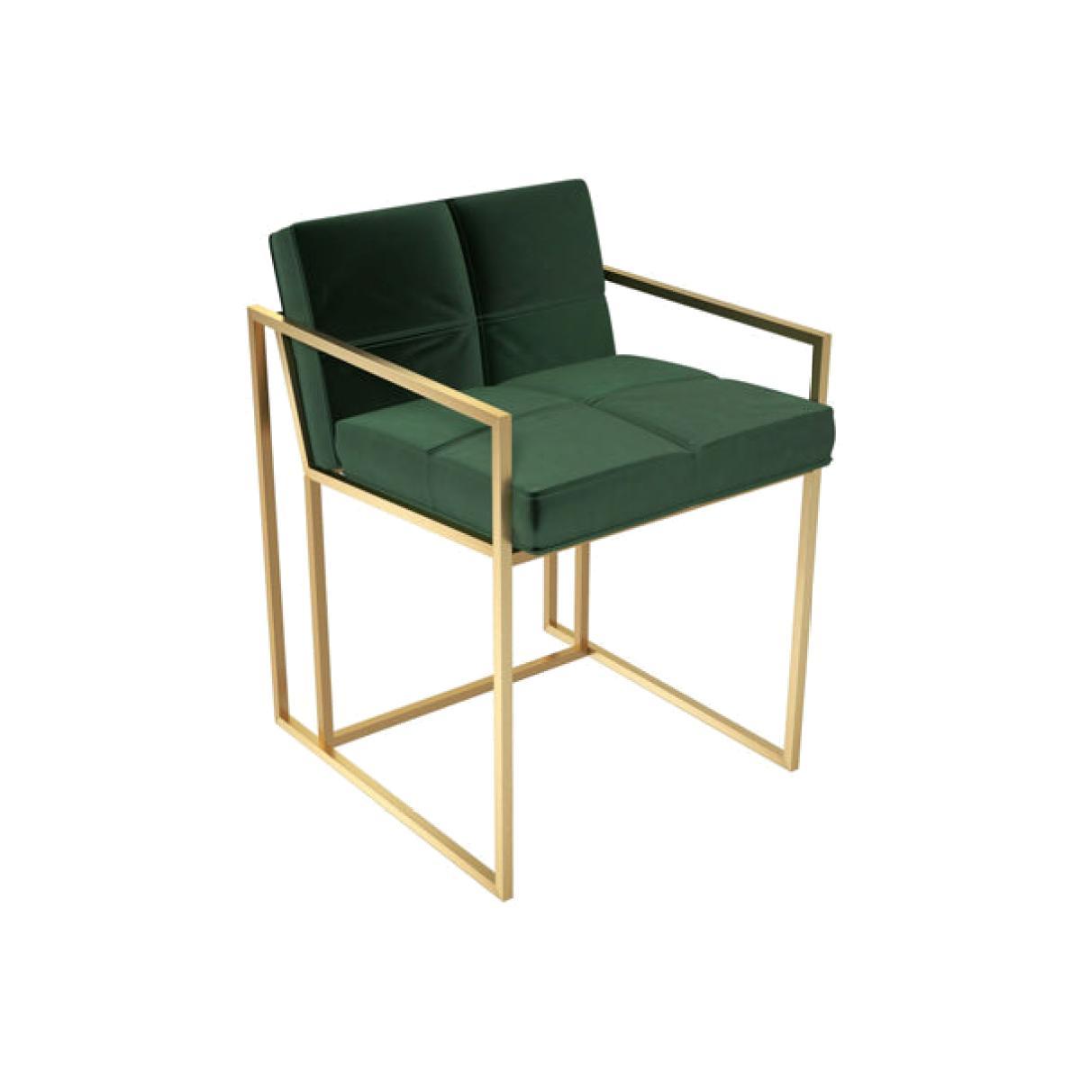A modern, contemporary dining chair, upholstered in deep green velvet fabric with a brushed brass finish frame. *Moot Trading Ltd is not a lender and acts only as an introducer. The credit product is provided by Klarna Bank AB (publ). Credit is only available to permanent UK residents aged 18 and over, subject to status. Terms and conditions apply. Please note that the following products are not regulated by the FCA: Pay in 30 days and Pay in 3 instalments. Read More.
