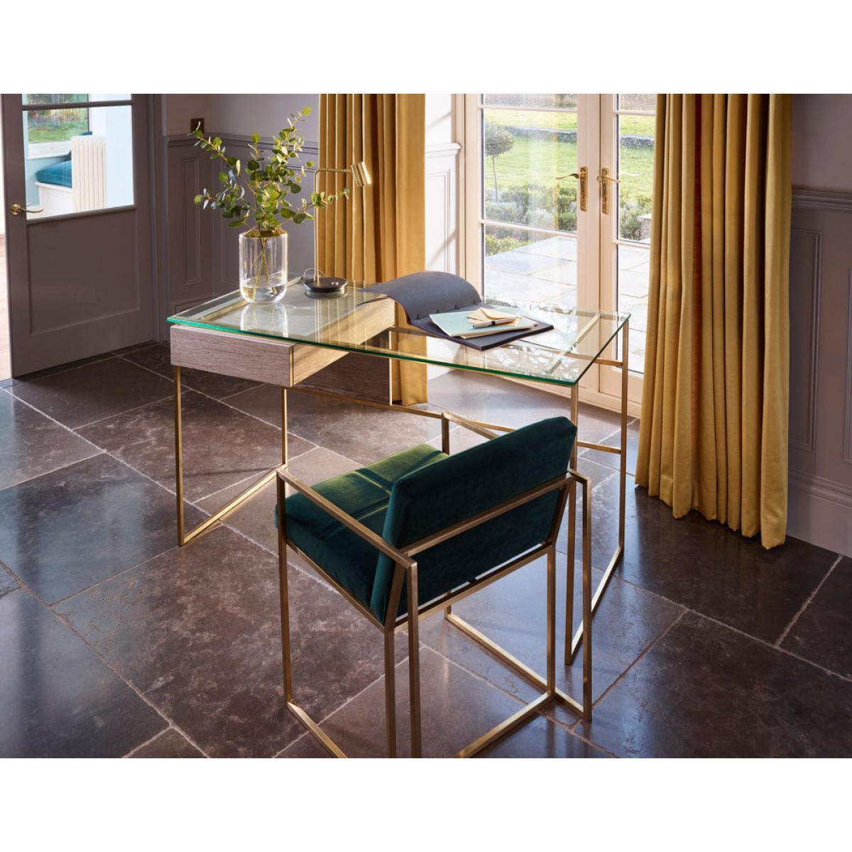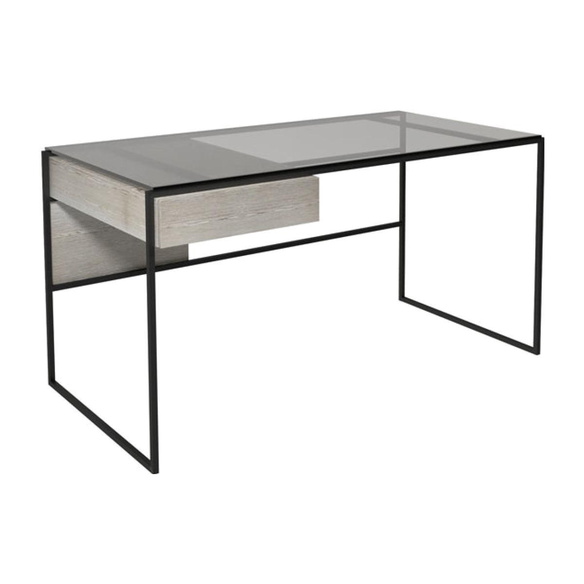 Take the modern design style of this stunning Gillmore Federico desk and give a stylish look to your home study area. The desk has a stylish modern clear glass top mounted on a black metal frame and has a single drawer and back panel made from weathered oak veneer. It is a contemporary look and design with the glass and weathered oak and would suit a room with a contemporary design style. The desk has a sleek modern look. The single drawer means you can keep a clean uncluttered look for the desk, giving your study area a stylish modern appearance. *Moot Trading Ltd is not a lender and acts only as an introducer. The credit product is provided by Klarna Bank AB (publ). Credit is only available to permanent UK residents aged 18 and over, subject to status. Terms and conditions apply. Please note that the following products are not regulated by the FCA: Pay in 30 days and Pay in 3 instalments. Read More.