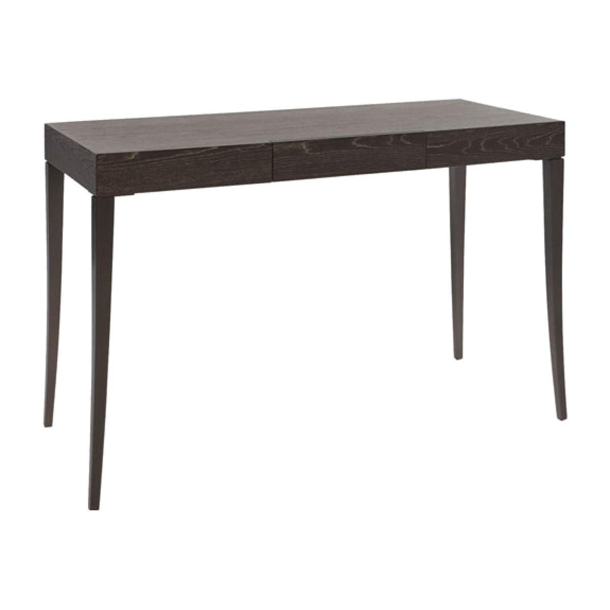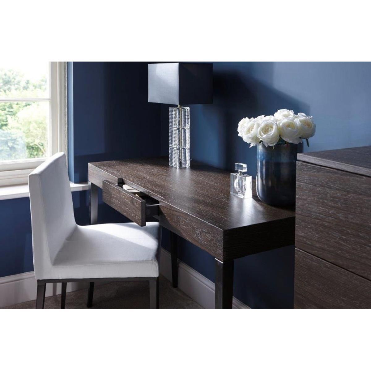 Add some understated classical luxe to any setting with Olivia's Gillmore Fitzroy charcoal oak veneer dressing table. The cabinet of this beautifully designed bedroom dresser or hallway table is impeccably finished in a sumptuous oak veneer stained in seductive charcoal, with contrasting sensuously curved legs in deep gun metal grey with a satin finish. This elegantly modern table also features a compact drawer in its centre for discreet storage of essential items. A contemporary table with timeless appeal, it is enhanced by the meticulous craftsmanship evident in every detail. The pared back silhouette of this table will make a lasting impression in your home. *Moot Trading Ltd is not a lender and acts only as an introducer. The credit product is provided by Klarna Bank AB (publ). Credit is only available to permanent UK residents aged 18 and over, subject to status. Terms and conditions apply. Please note that the following products are not regulated by the FCA: Pay in 30 days and Pay in 3 instalments. Read More.