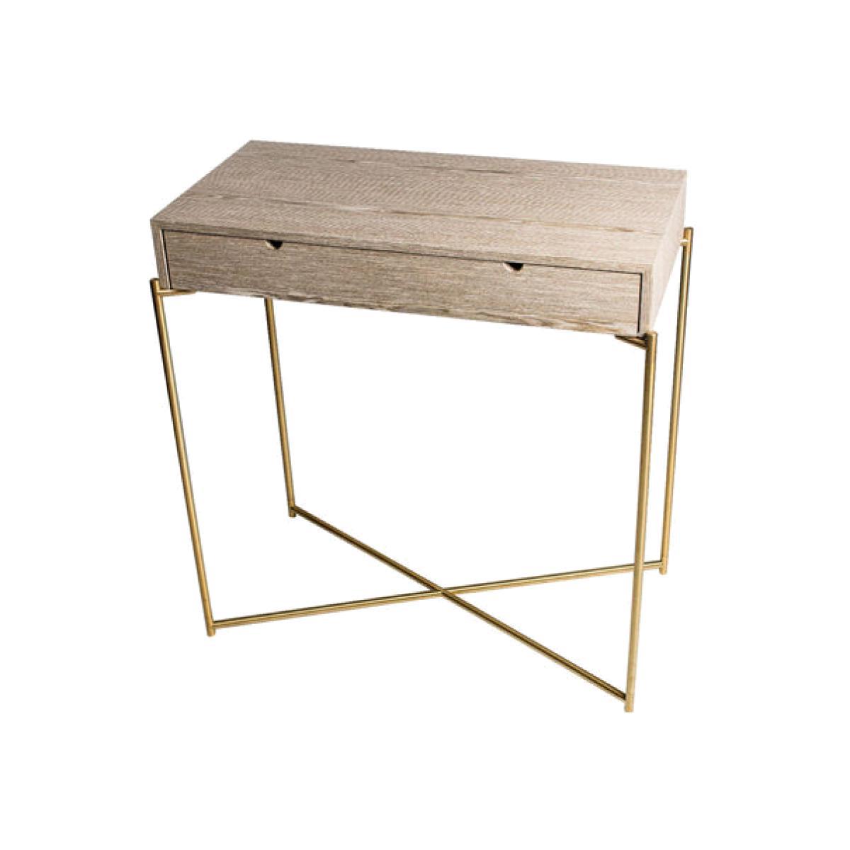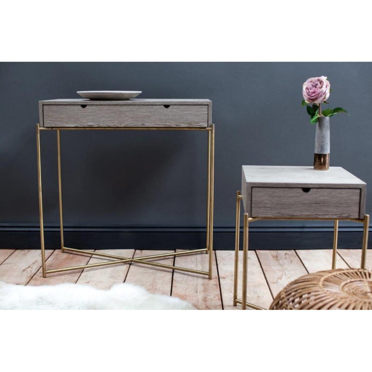 If you are looking for a console table but don't have the room for a larger model, then the Gillmore Iris Console Table in Weathered Oak might be what you are looking for. The satin brass base features an elegant cross-legged style. It includes a drawer, which could be useful in the hallway to store your keys or post. Alternatively, place it in the dining room to keep your tableware and display flowers on the top. The weathered oak gives a natural appearance to the table, while the drawer features delicate cut out handles. The Iris Console Table measures: H:85. 2 x W:83. 2 x D:42. 5 cm. *Moot Trading Ltd is not a lender and acts only as an introducer. The credit product is provided by Klarna Bank AB (publ). Credit is only available to permanent UK residents aged 18 and over, subject to status. Terms and conditions apply. Please note that the following products are not regulated by the FCA: Pay in 30 days and Pay in 3 instalments. Read More.