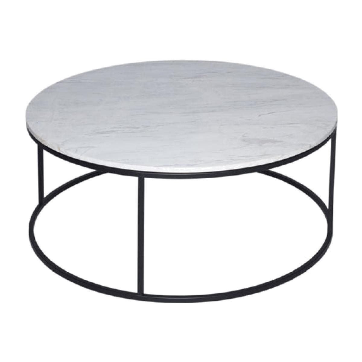 This lovely coffee table offers just the right combination of classic and contemporary styles to look stunning in any living room or conservatory. The table top has been created from white marble featuring black veins, which gives it a wonderful air of classicism. It has a round shape and is big enough to rest your coffee cup or wine glass as well as your favourite book or magazine, ready for some perfect quiet time. Alternatively, it makes a wonderful focal point from which to entertain your guests. This table features a black metal base and legs for a wonderful contrast. *Moot Trading Ltd is not a lender and acts only as an introducer. The credit product is provided by Klarna Bank AB (publ). Credit is only available to permanent UK residents aged 18 and over, subject to status. Terms and conditions apply. Please note that the following products are not regulated by the FCA: Pay in 30 days and Pay in 3 instalments. Read More.