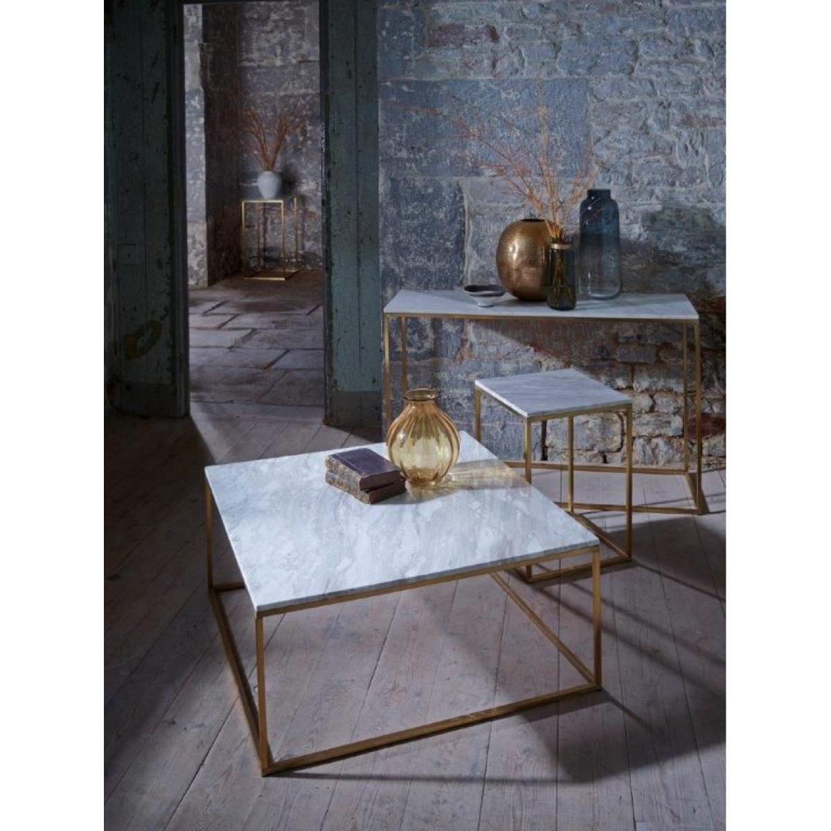 This delightfully sleek Gillmore Kensal coffee table has been created using white marble, and it will make a perfect companion for your other contemporary furnishings in your space. The square coffee table, which has a sophisticated polished steel base, is perfect for serving cocktails and canapés to friends. An occasional table that will delight, it's extremely versatile and when not in use can be used to exhibit magazines and a chic vase. Measuring H: 40. 1 x W: 90 x D: 90 cm, it can be used in a modern living space for pleasure while also adding to the aesthetics of the room. *Moot Trading Ltd is not a lender and acts only as an introducer. The credit product is provided by Klarna Bank AB (publ). Credit is only available to permanent UK residents aged 18 and over, subject to status. Terms and conditions apply. Please note that the following products are not regulated by the FCA: Pay in 30 days and Pay in 3 instalments. Read More.