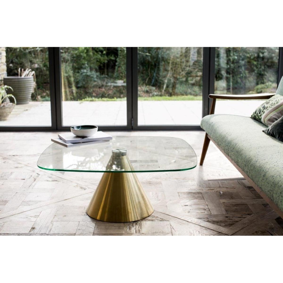 The Gillmore Oscar Square Coffee Table is the epitome of contemporary style and finesse. This gorgeous coffee table boasts a pristine clear glass table top, perched sedately above the conical base that is styled in an opulent brushed brass finish. This piece is luxuriously elegant, blending well with various design schemes throughout the home. The Oscar coffee table would look stunning at the centre of your furniture arrangement, adorned with your favourite set of coasters. Available in two sizes; the smallest measures 33. 3cm in height, 80cm in width, and 80cm in depth, while the largest measures 33. 3cm in height, 110cm in width, and 110cm in depth. *Moot Trading Ltd is not a lender and acts only as an introducer. The credit product is provided by Klarna Bank AB (publ). Credit is only available to permanent UK residents aged 18 and over, subject to status. Terms and conditions apply. Please note that the following products are not regulated by the FCA: Pay in 30 days and Pay in 3 instalments. Read More.