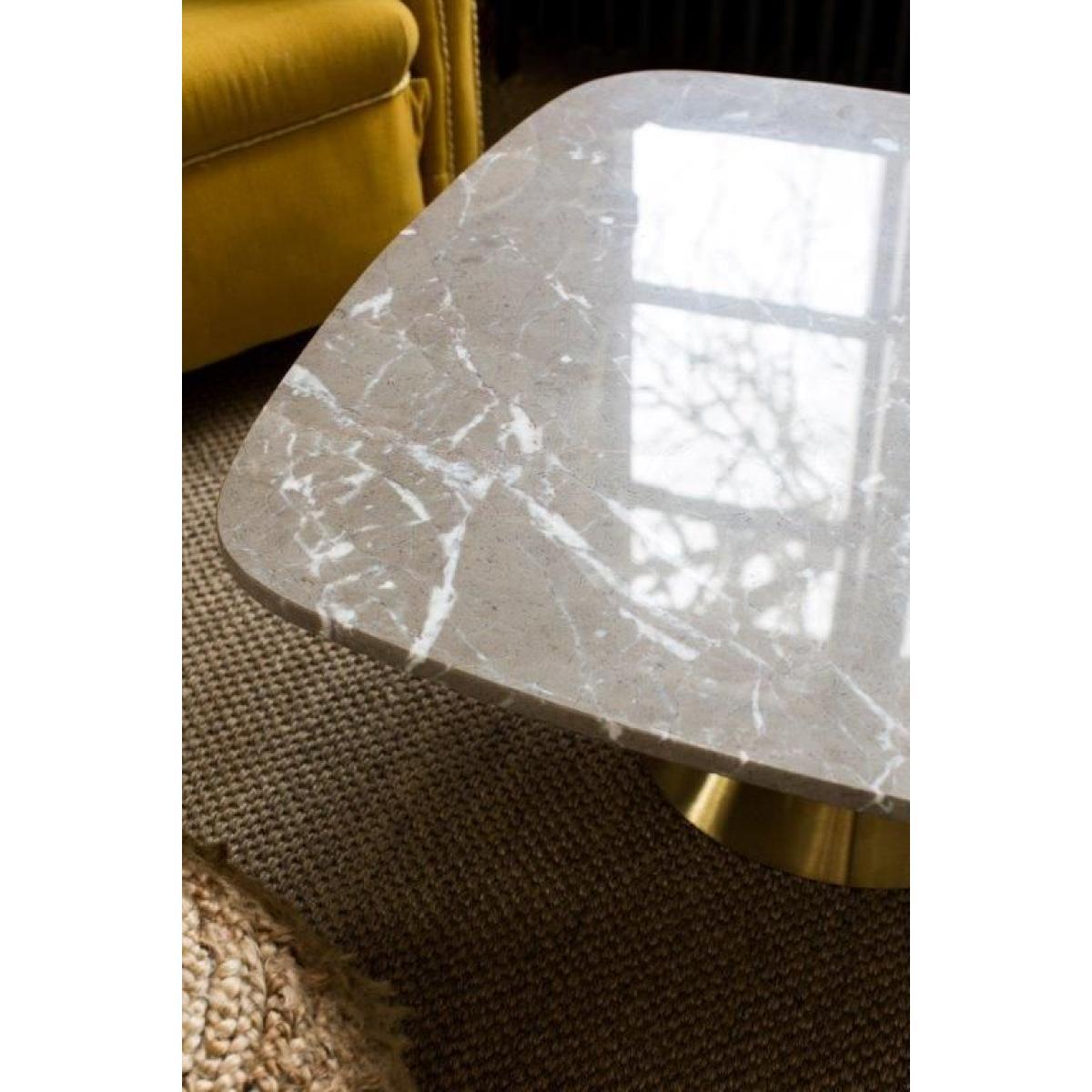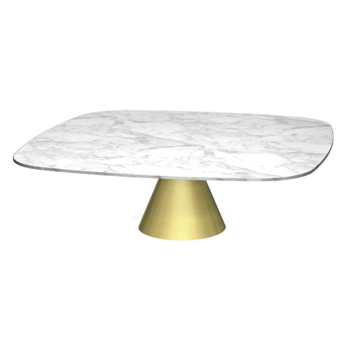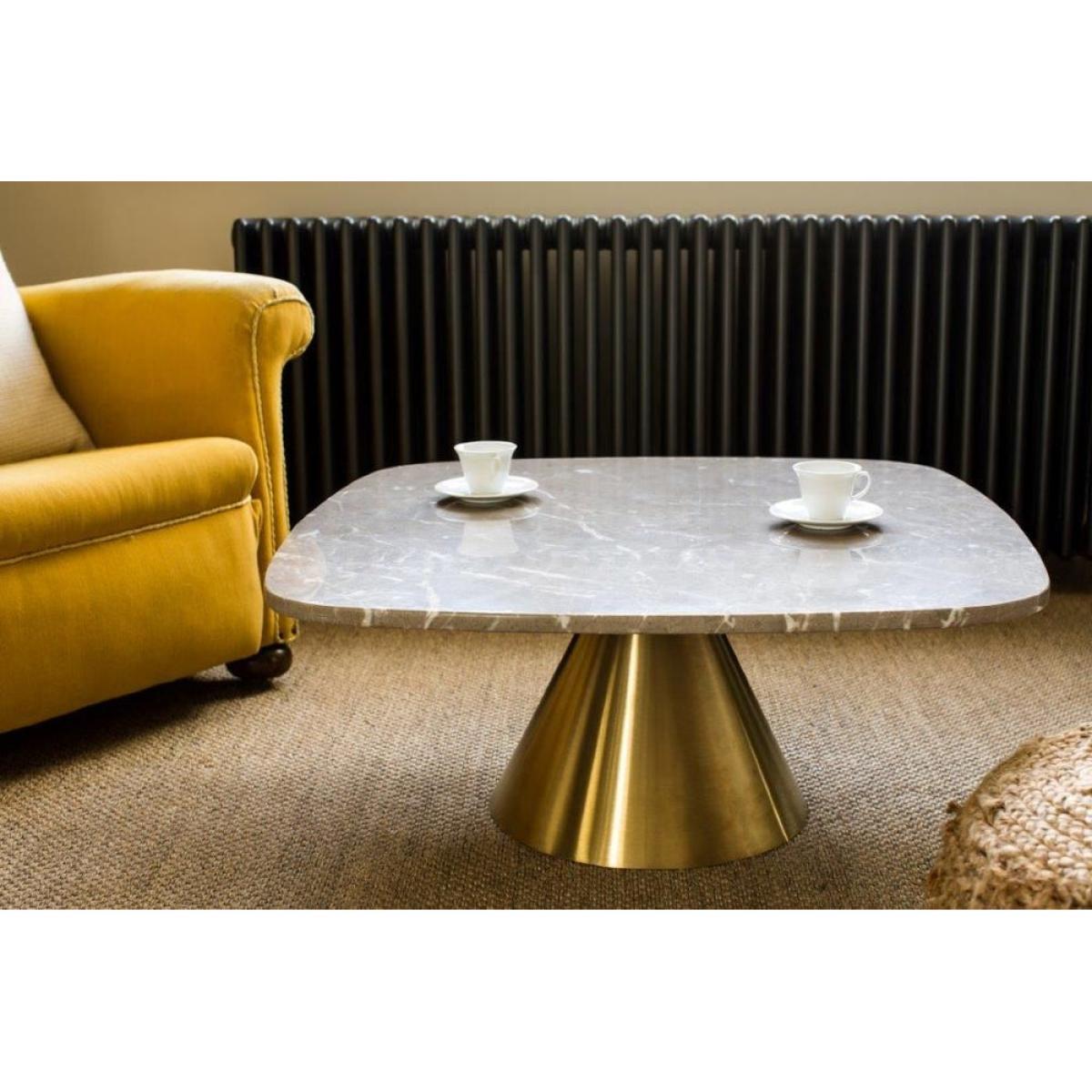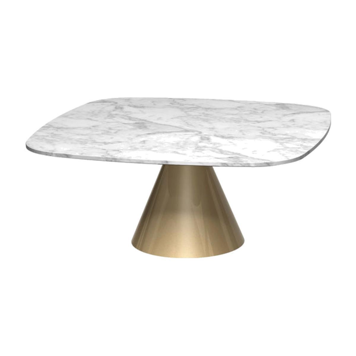 Bring some daring style and elegance into your home with this stylish Oscar coffee table from Gillmore. Its white marble top is a gently curved square and sits firmly upon a distinctive conical base finished in brushed brass. The effect is very clean and geometrical and creates a luxurious impression with an entirely modern elegance. These pieces can be paired with a range of matching dining tables and side tables from the same range which also offers alternative finishes. The Oscar coffee table is also available in a choice of two sizes - 110cm by 110cm or 80cm by 80cm. Both are 33. 3cm high. *Moot Trading Ltd is not a lender and acts only as an introducer. The credit product is provided by Klarna Bank AB (publ). Credit is only available to permanent UK residents aged 18 and over, subject to status. Terms and conditions apply. Please note that the following products are not regulated by the FCA: Pay in 30 days and Pay in 3 instalments. Read More.