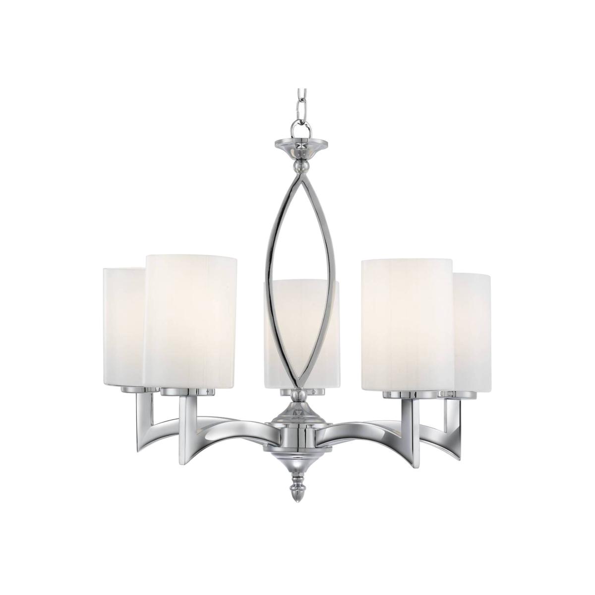 The range has a very modern design which makes it the ideal choice for any contemporary style room. The opal glass shades give the fitting an extra dimension, hiding the lamp while allowing the light to shine through. The chrome finish gives the fitting a clean feel. The collection offers the perfect fittings for a dining room or living room area. This five light ceiling light is also available as a matching wall light.