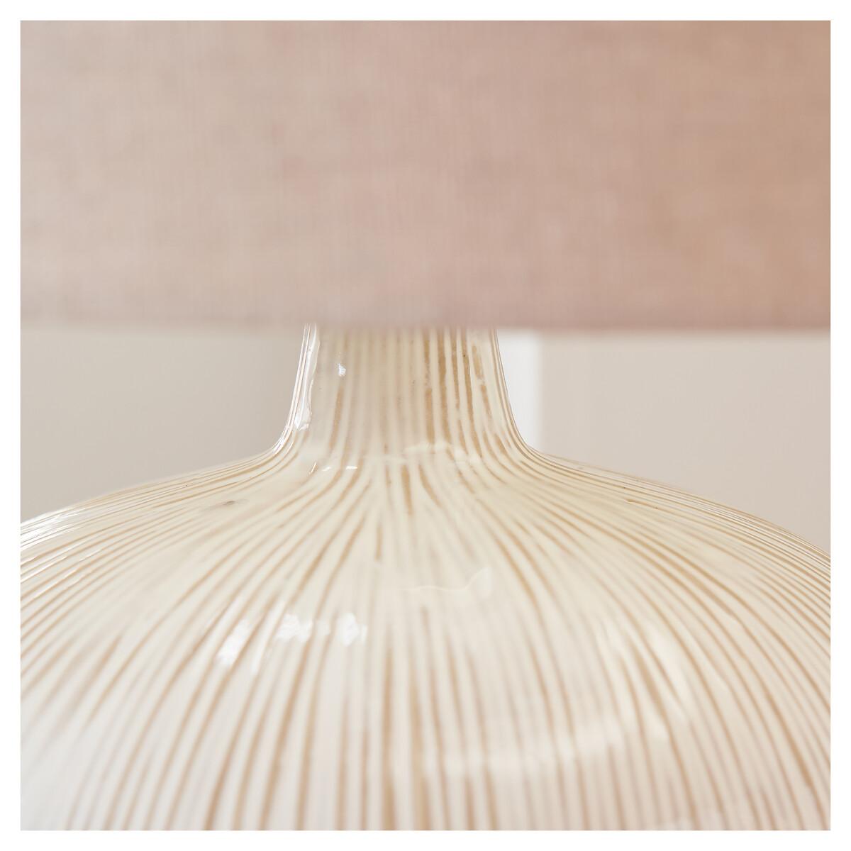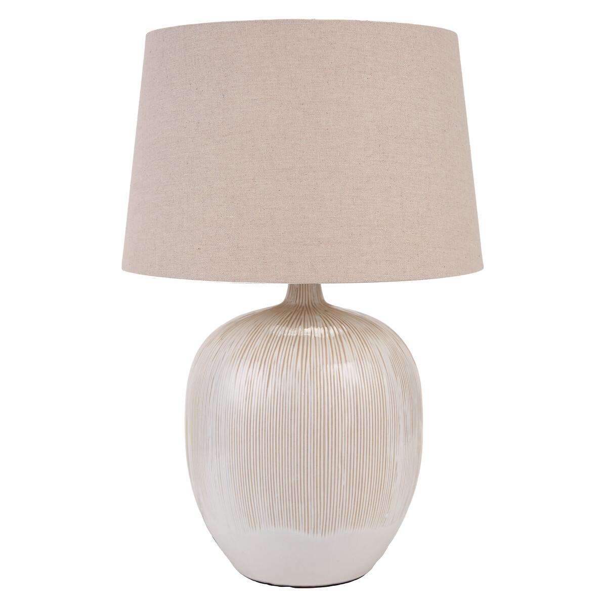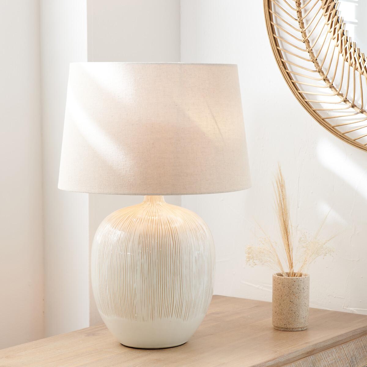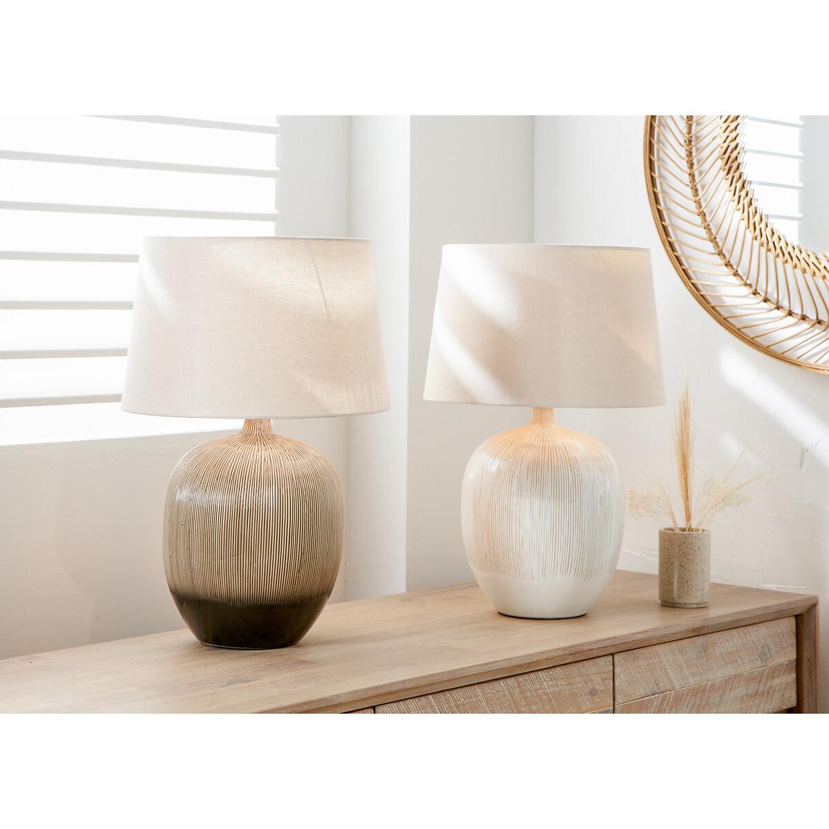 The stunning ceramic table lamp with an elegantly curved base has a subtle textured effect, further accentuated with a stylish cream to natural ombre. The lamp base is topped off perfectly with a tapered, self-lined shade in a natural hue. This versatile table lamp will look fabulous in any scandi-style interior, with its natural colour palette and delicate tactility. Product Dimensions: 33x 33x 50cm. Weight: 3.2kg Ceramic 50%, Linen 50%One Size. This product will be dispatched by one of our trusted suppliers. You’ll be contacted by their selected courier about your delivery. PACIF01