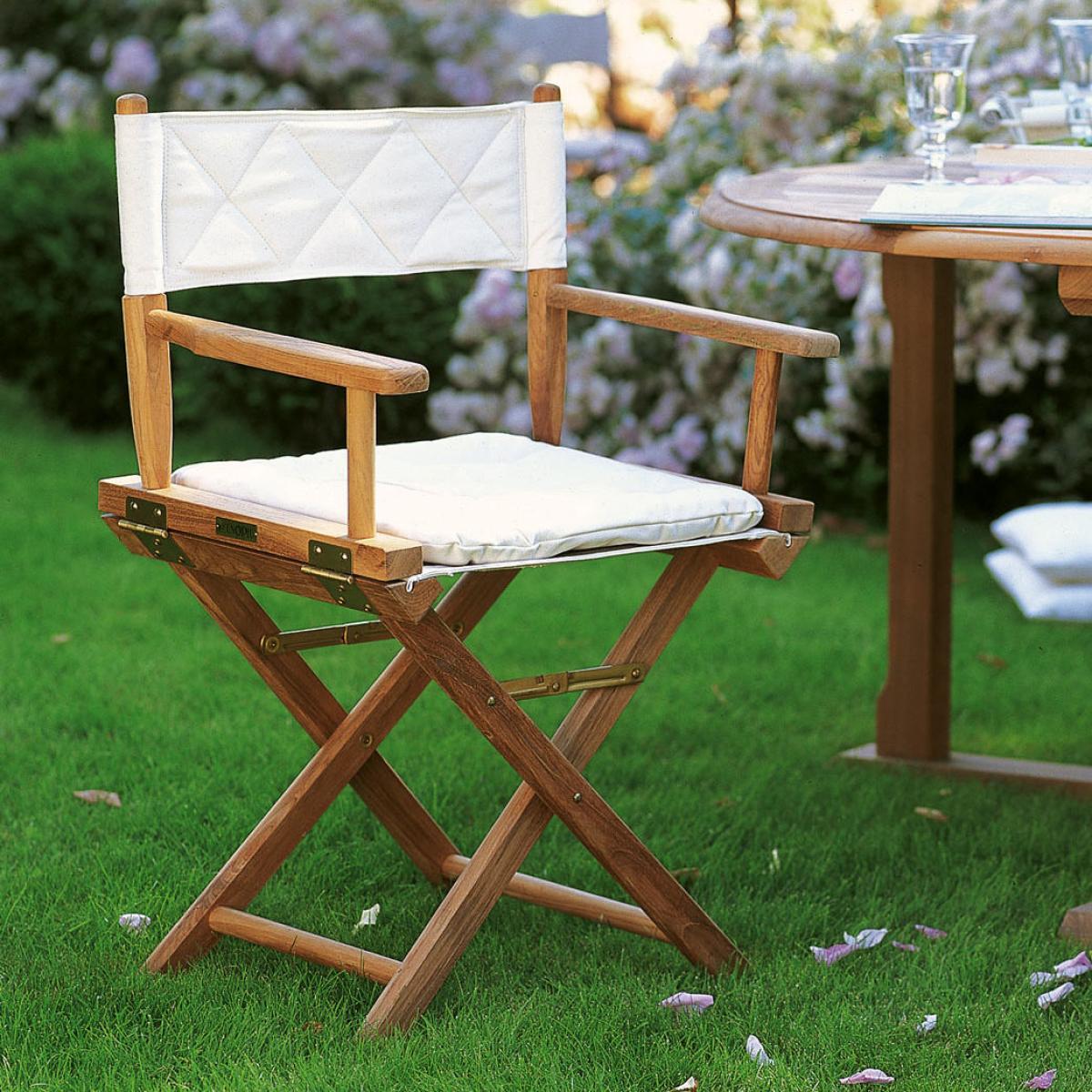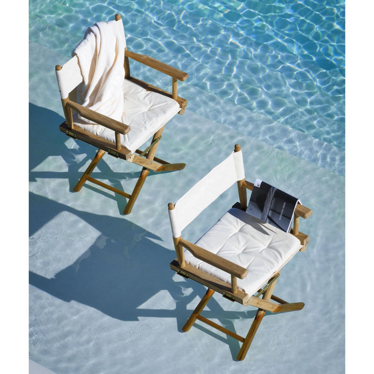 Ginger Folding armchair - / Teak & canvas - Cushion by Unopiu White