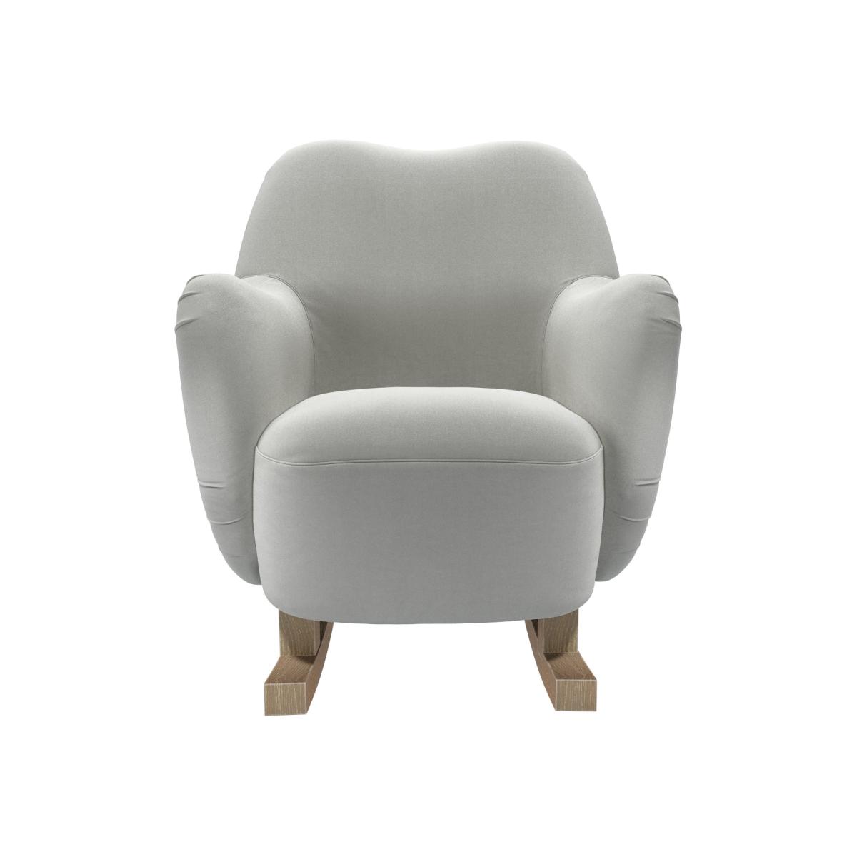 I love this rocking chair for its clean, contemporary silhouette and the soft, natural tone of the Wishing Well Organic Smart Cotton. It works particularly well in relaxed, modern interiors, such as Scandi-inspired spaces, nurseries, or cosy nook areas where comfort is key. The organic cotton upholstery adds a tactile softness that invites lounging without feeling too casual. Practical styling tips include pairing it with a textured throw or a small side table for a functional yet inviting corner. Its neutral colour makes it versatile, ideal for layering with other muted tones or bold accessories to create a harmonious, comfortable atmosphere.