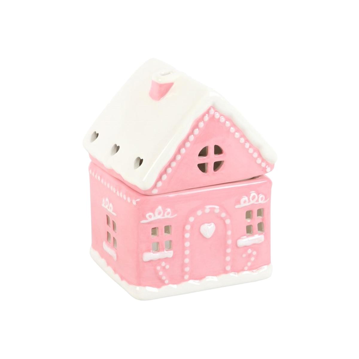 Who can resist this sweet, candy pink gingerbread house oil burner with snow frosting details. Remove the lid to add festive scents, place a lit tealight inside and watch this little home come to life with a warm, inviting glow. When not in use this oil burner becomes an ornamental detail that's sure to become a beloved piece in any Christmas decoration collection. Recommended for use with fragrance oil diluted with water. Always remove the lid whilst in use.