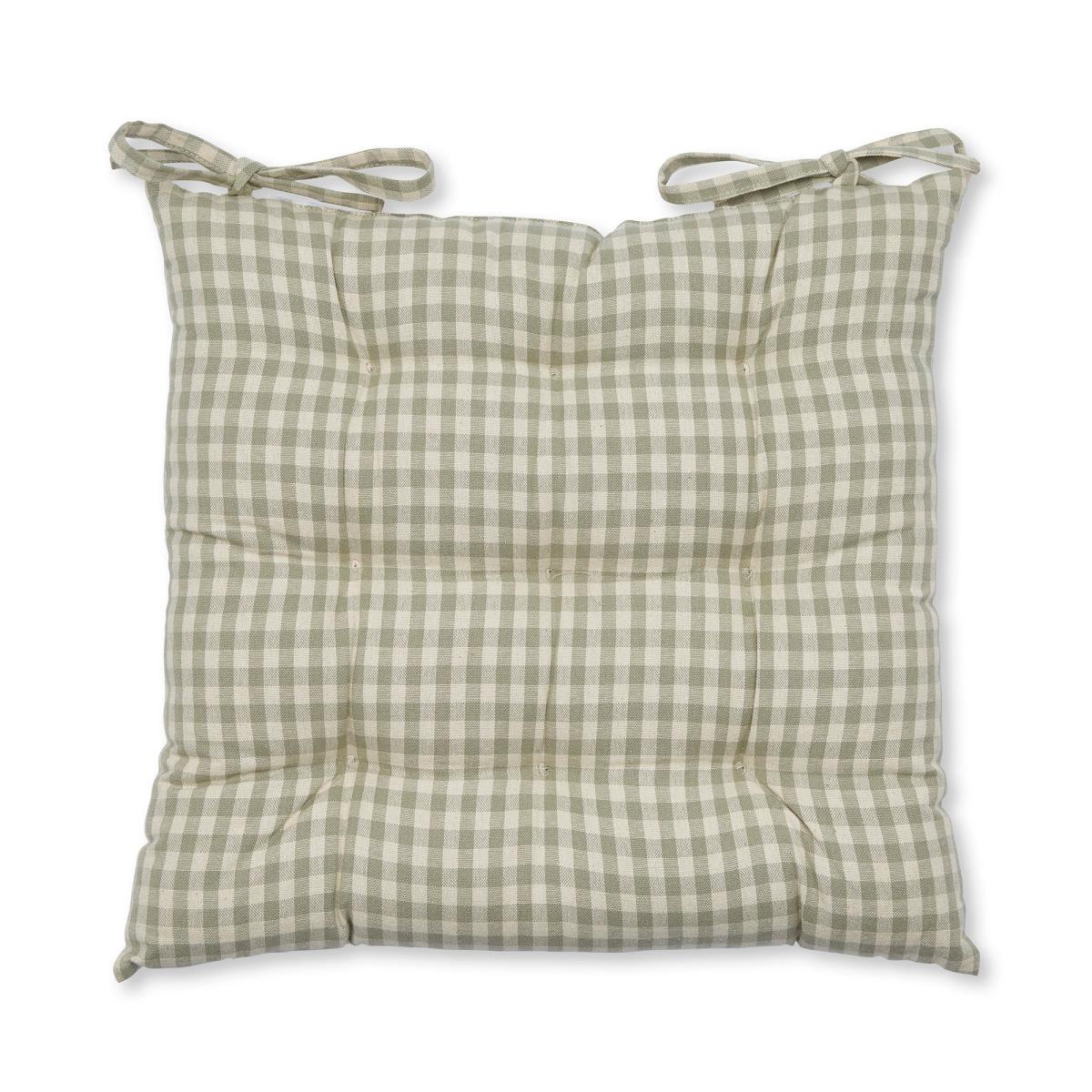 Our seat pad features a classic gingham check design in a beautiful sage colourway. A comfortable polyester filling is held in by a 100% cotton fabric with 9 stitches across the seat pad. Coordinating items are available to purchase within the sage check range.