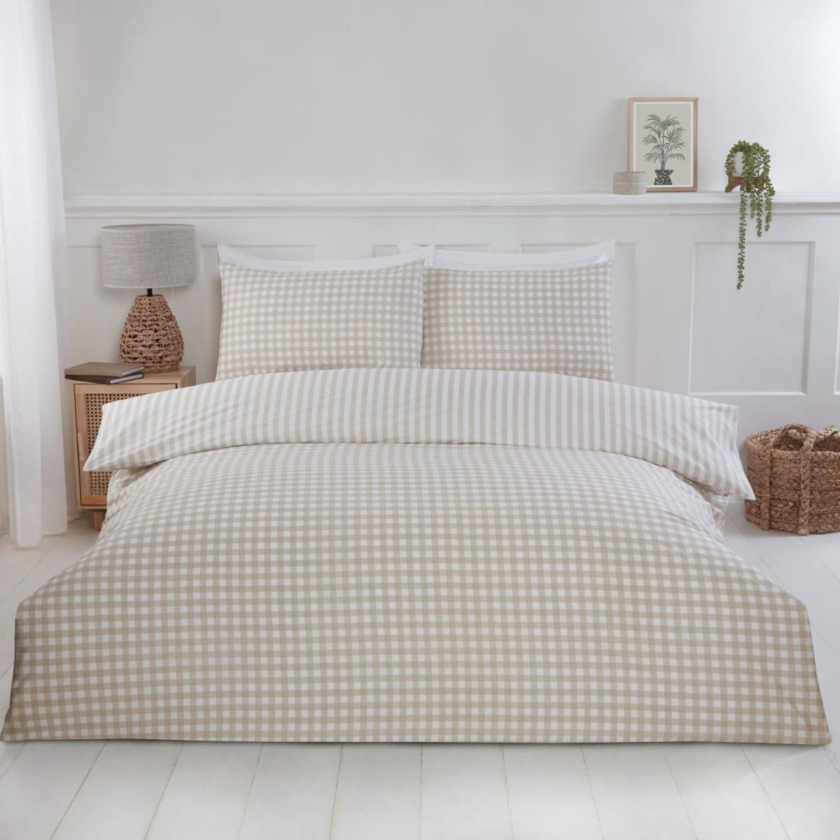 Gingham Check Polycotton Duvet Set With Pillowcase - Natural / Double