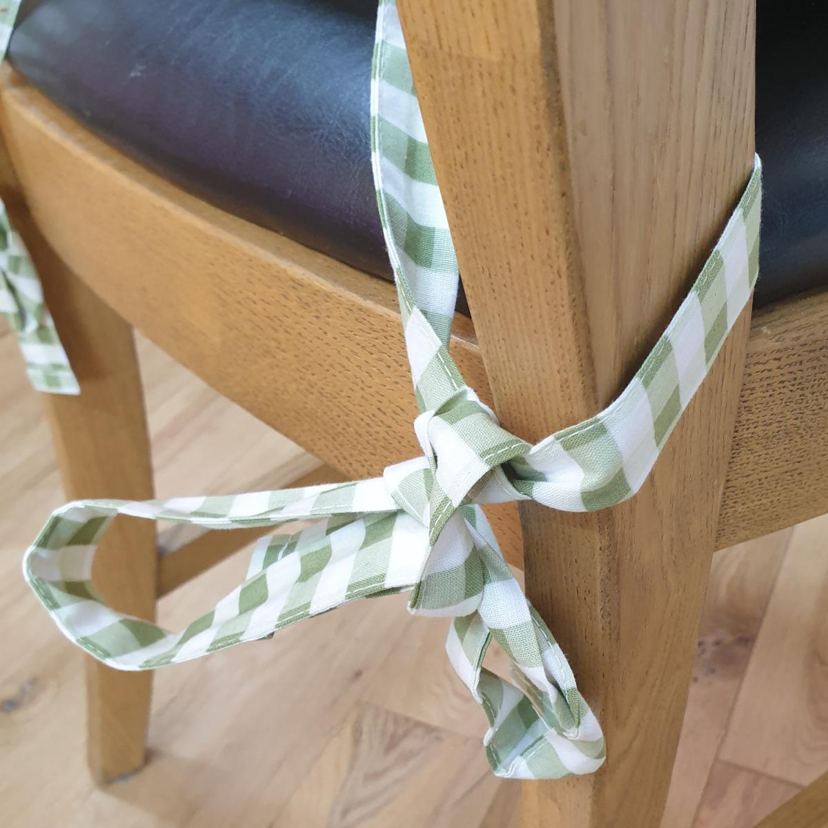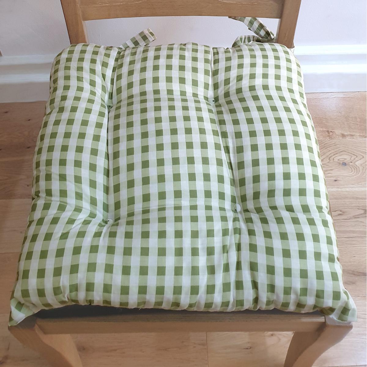 Gingham Check Seat Pad Cushion - Sage Green