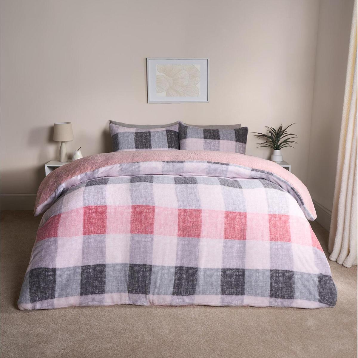 Elevate your bedroom with the gingham check teddy duvet set, a charming and cosy addition to your room. This duvet cover set features a timeless chucky gingham print, using a blend of colours to bring you an appealing and eye-catching bedding set-up. Alongside its rustic visual appeal, the set features our irresistible teddy fleece, which makes it amazing for cooler nights when you're craving warmth and a snug feel on your skin. Craft yourself a cosy corner with this set, and welcome yourself to bed with its combination of classic style and modern warmth.