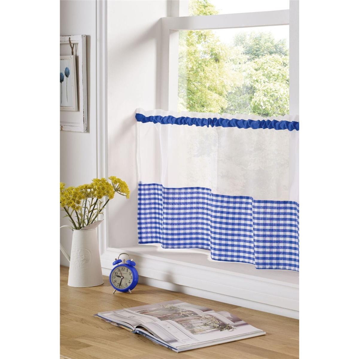 Gingham Checked Kitchen Voile Panel - Blue / 61cm