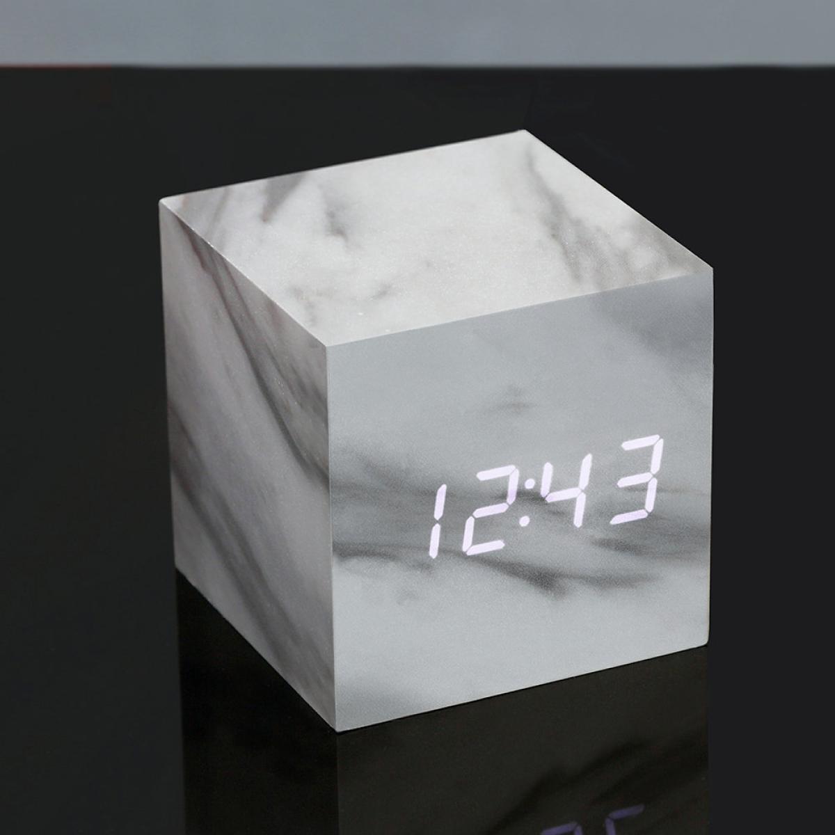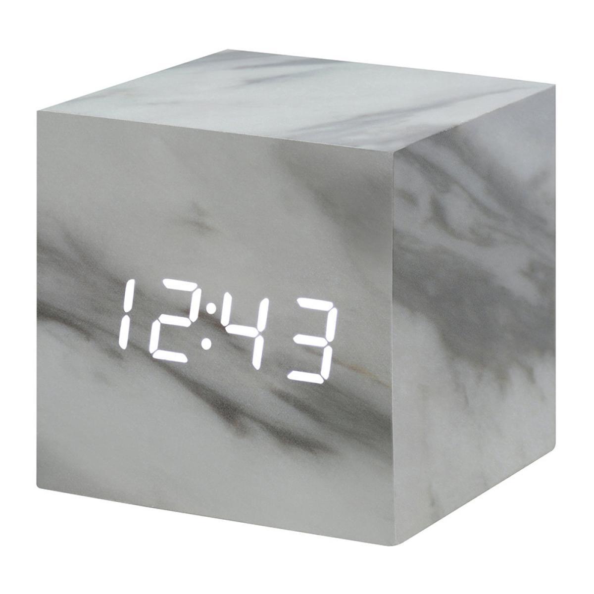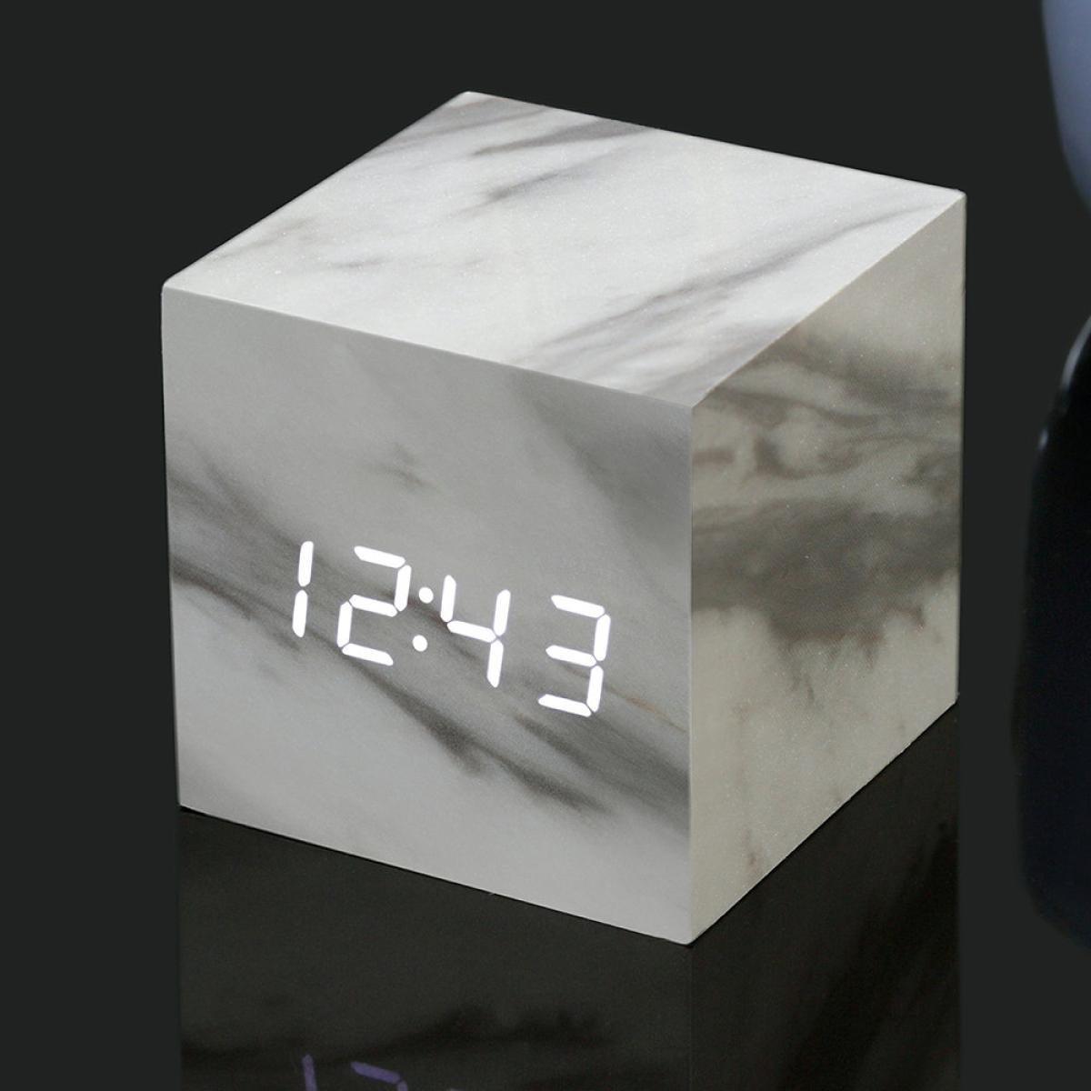 I love this cube clock for its sleek, minimalist look that works particularly well in modern or contemporary interiors. The marble finish adds a touch of luxury, making it a fantastic accent piece on bedside tables, desks, or open shelving. Its clean design combined with the white LED display ensures it blends effortlessly without overpowering the surrounding decor. For styling tips, place it alongside other monochrome or neutral-toned accessories to maintain a cohesive look, or pair it with metallic accents for a more eclectic vibe. Its compact size and versatile aesthetic make it both functional and stylish in a variety of spaces.