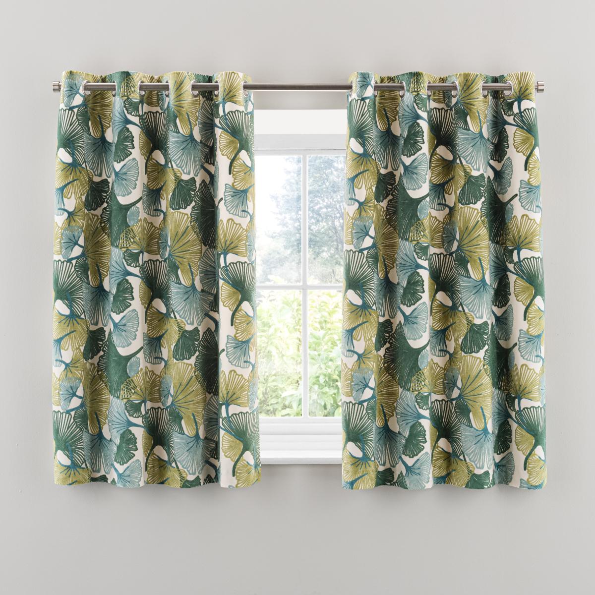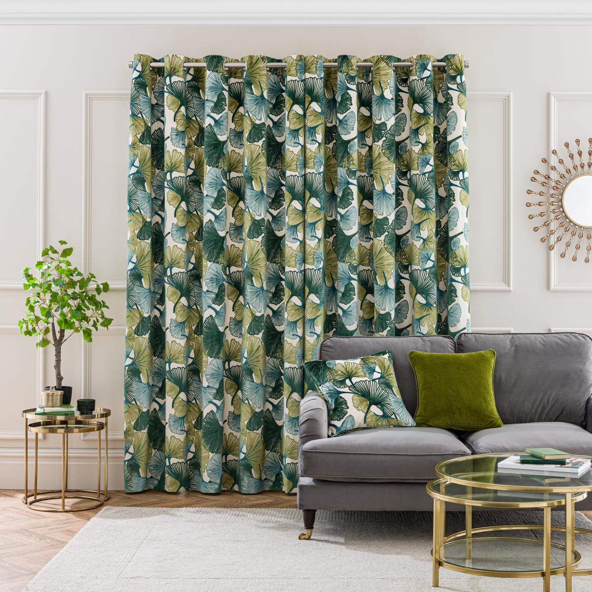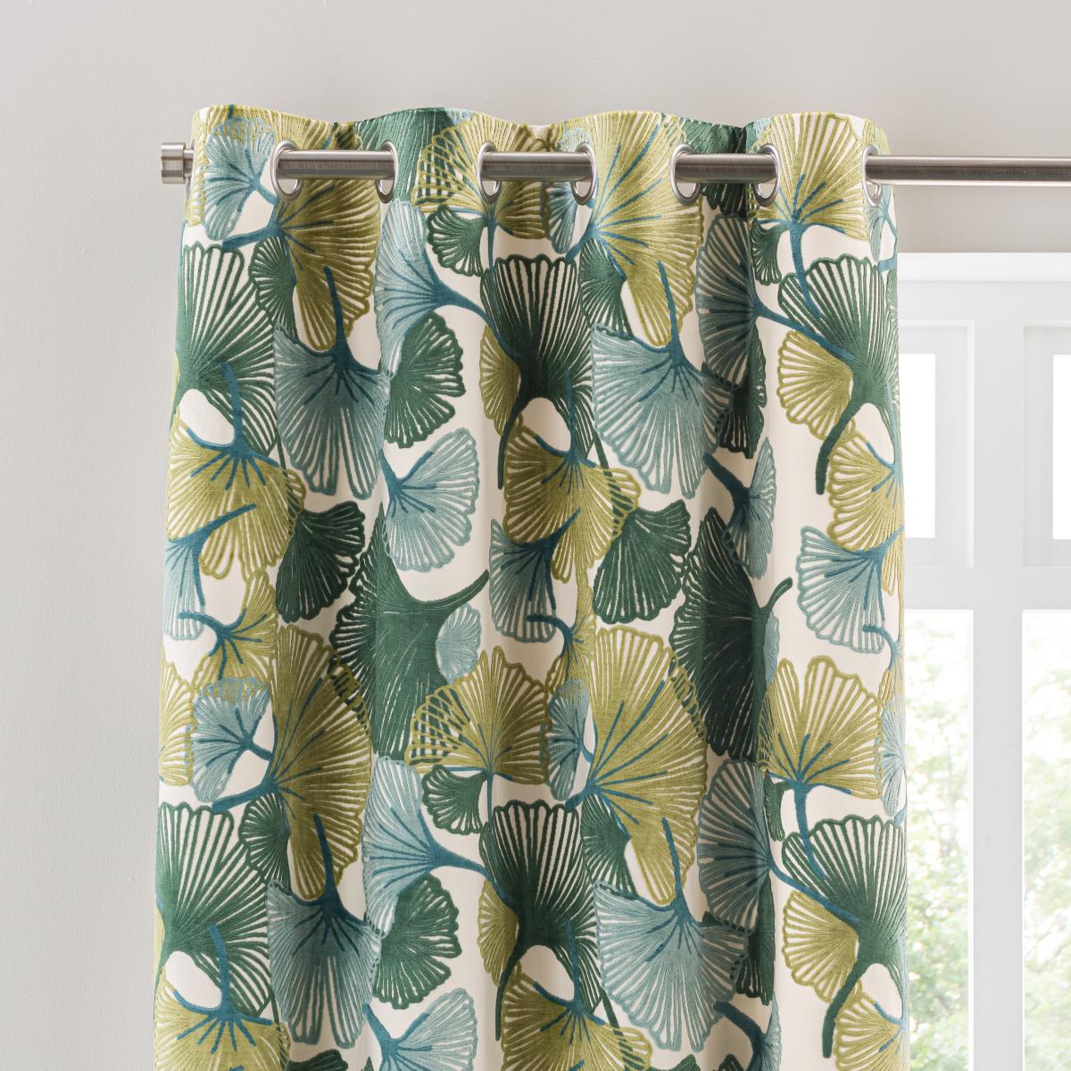 * Easy to hang eyelet header* Intricate cut velvet design* Heavyweight, luxurious fabric* Leaf motif in a choice of rich colours* Available in a range of sizes* Matching cushion available Bring a touch of art deco style to your space with these Gingko cut velvet curtains. The leaf motif comes in a choice of rich, luxurious colours, and the durable recycled polyester fabric has a heavyweight feel for an excellent drape. Choose from a wide range of sizes to suit your window, and a matching cushion is also available to complete the look. Please note: These curtains are sold as a pair.