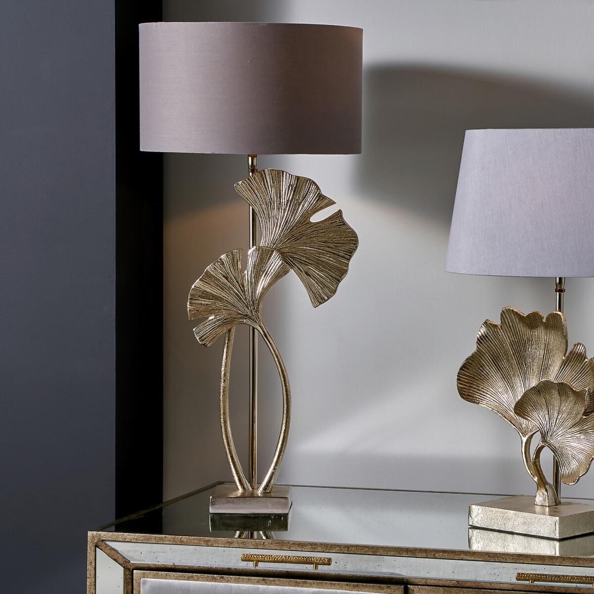 This elegant gingko leaf design table lamp is the epitomy of style. The shiny champagne metal table lamp would look fantasic on a side table or console table paired with either a luxurious velvet shade or neutral linen shade. Product Dimensions: 28x13x64cm Bulb Type:E27 black plastic with shiny champagne casing (adjustable)Maximum Wattage:60W Bulb Included?:No. Number of Bulbs Required:1Cable/ Switch Info:Black plastic, 2x0.75mm², 2m from side of base, Black in-line switch (40cm from base)This product will be dispatched by one of our trusted suppliers. You’ll be contacted by their selected courier about your delivery.