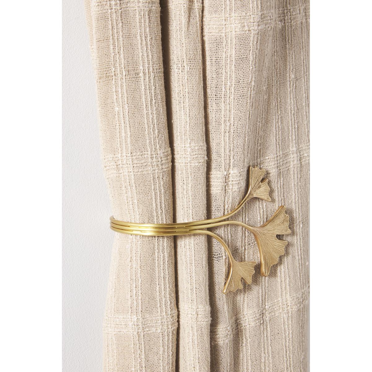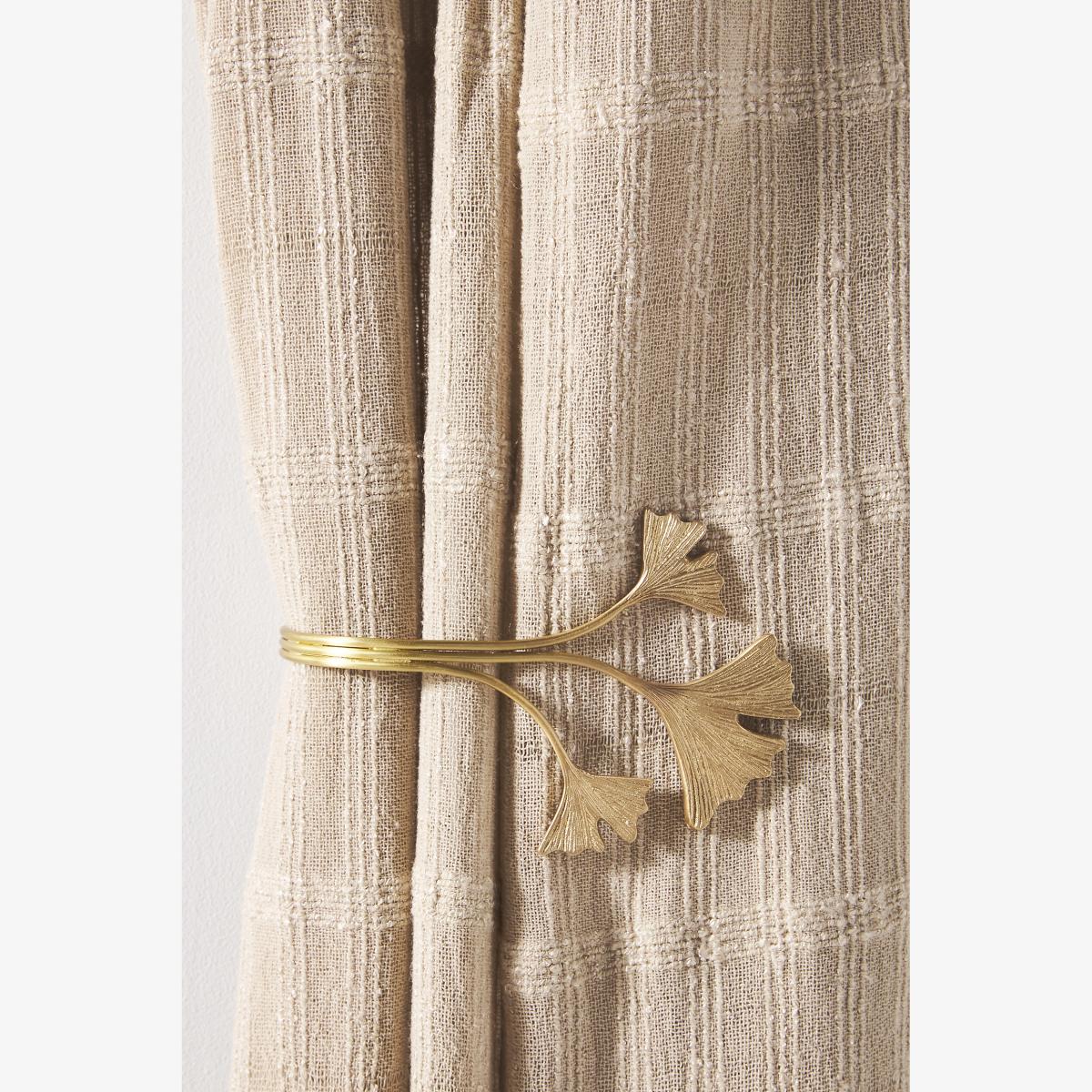 Decorative and functional, this piece of hardware shaped to mimic the outline of a ginkgo leaf offers an easy way to tie back curtains *and* provides a stylish touch to your window treatment. * Cast brass * Sold individually * Hanging hardware required * Imported