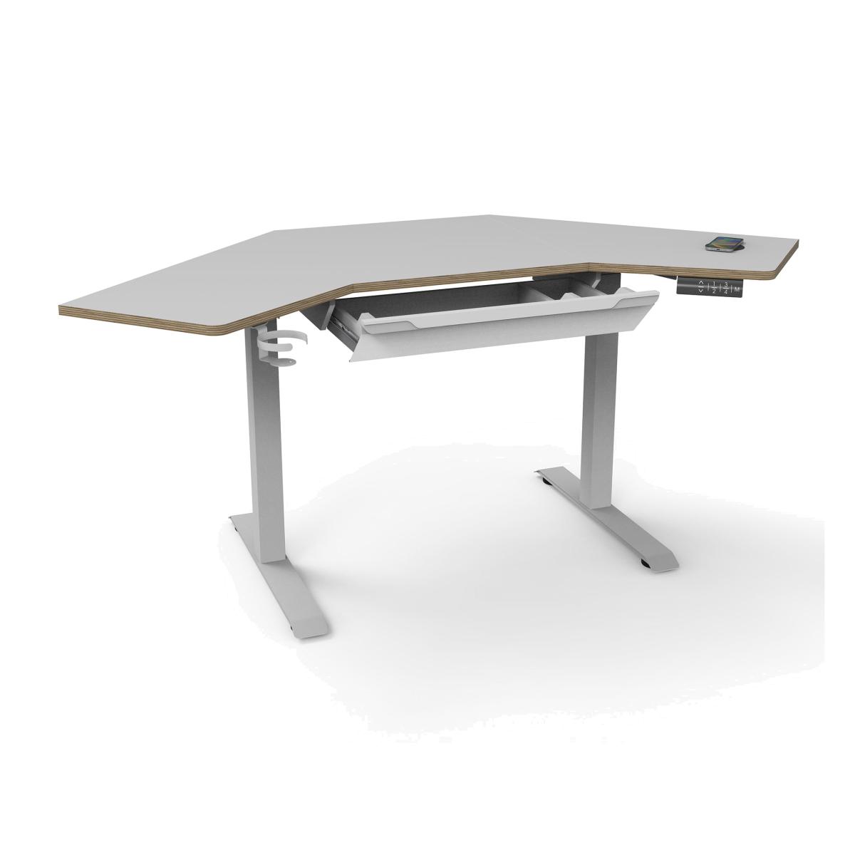 * Smart desk* Charging Points* Digital Control Panel* Memory Settings With convenience and innovation in mind, this desk features a built-in QI phone charging point, along with USB and USB-C charging ports, ensuring your devices stay powered up and ready to go. The digital control panel allows for effortless adjustment of the desk height, with memory settings available for personalised comfort. Adding a touch of modern elegance, the desk showcases unique exposed plywood edging, elevating your office decor. This desk also comes equipped with a deep smart storage drawer, providing ample space to keep your essentials organised and within reach.