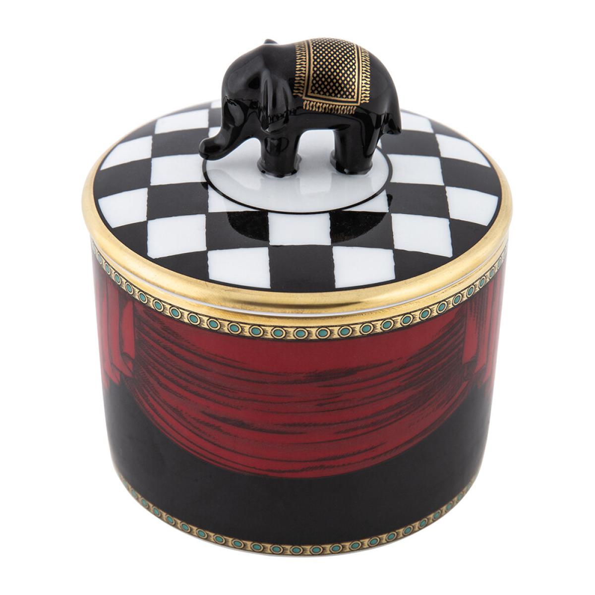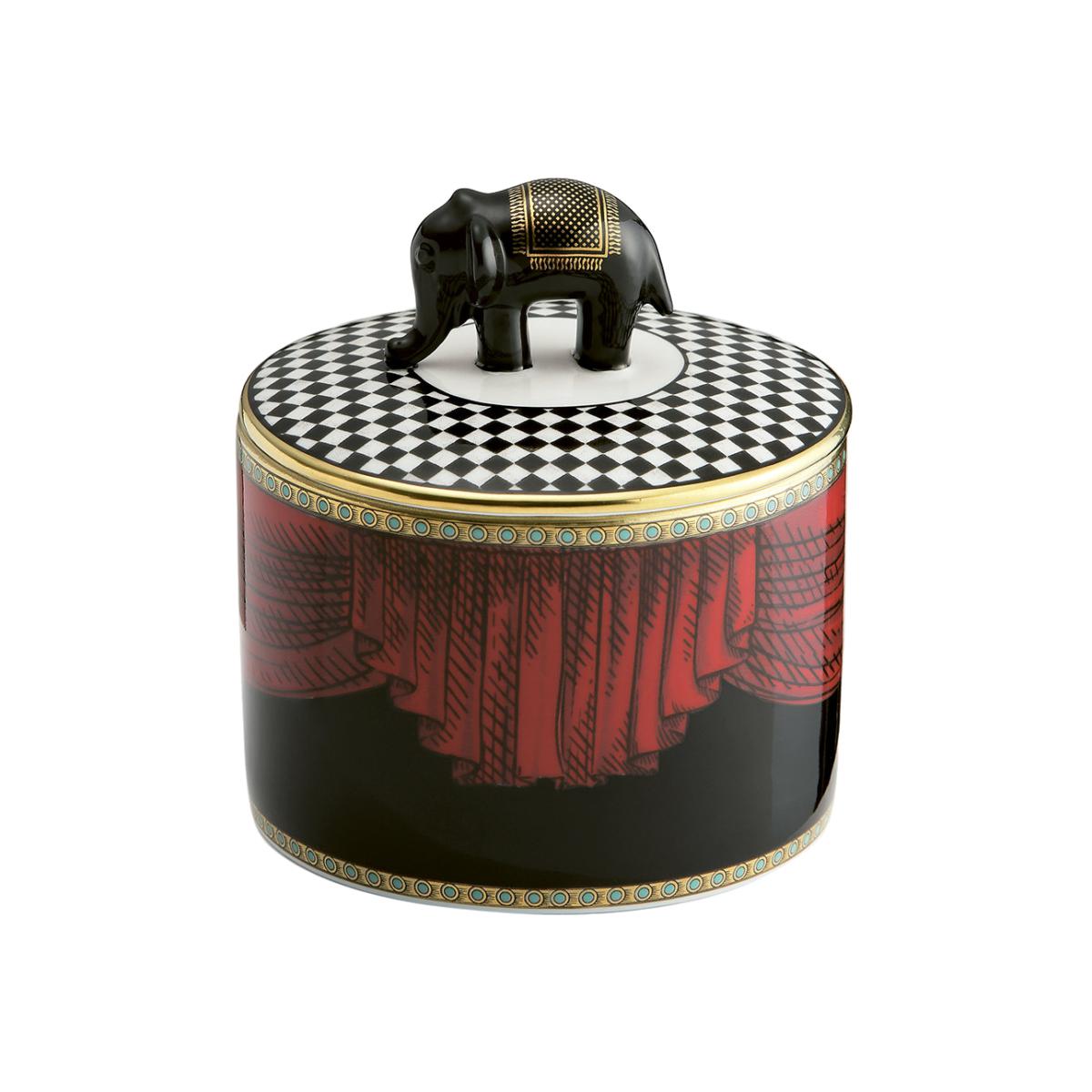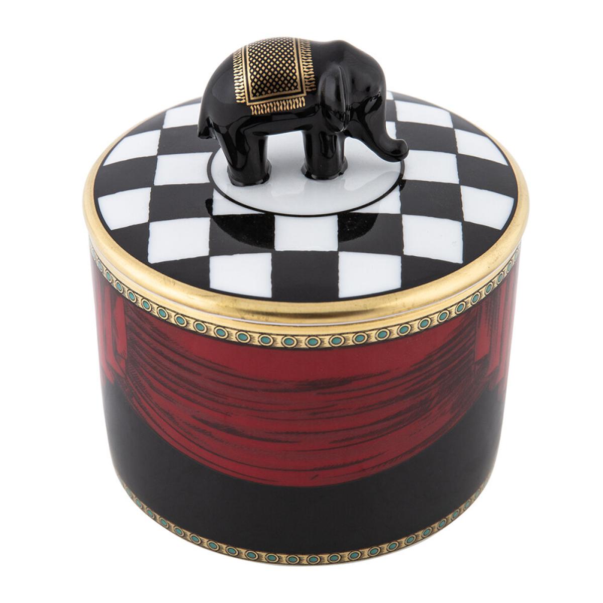 Take a walk on the wild side in your interior with this Totem trinket box from Ginori 1735. Featuring a host of colourful patterns including theatre curtains and checkerboards, it is topped with a charming elephant figurine. Crafted from porcelain, this trinket box has been made in Italy and beautifully hand decorated. Please note, each Ginori 1735 piece is completely unique and has been hand decorated. Because of this slight imperfections and variations can occur, which only add to the charm of the one of a kind pieces.
