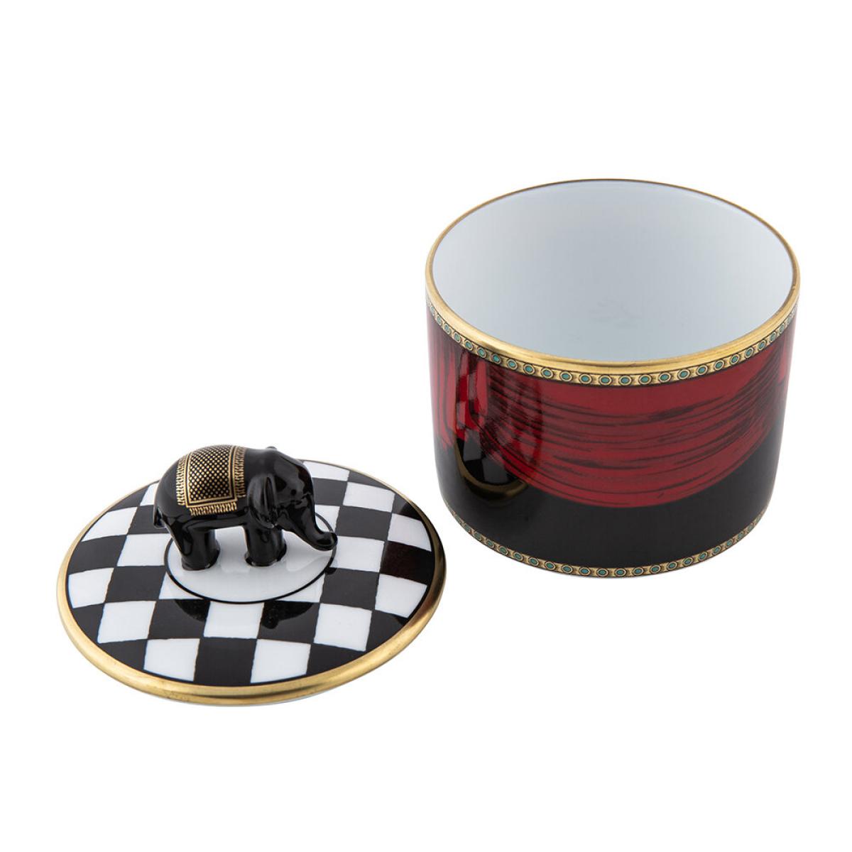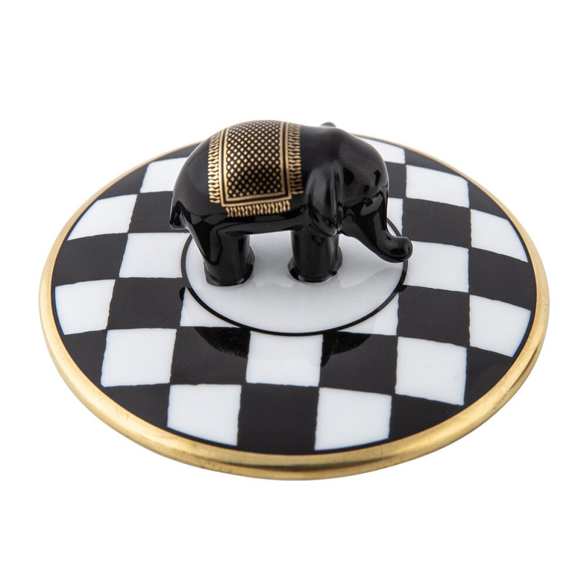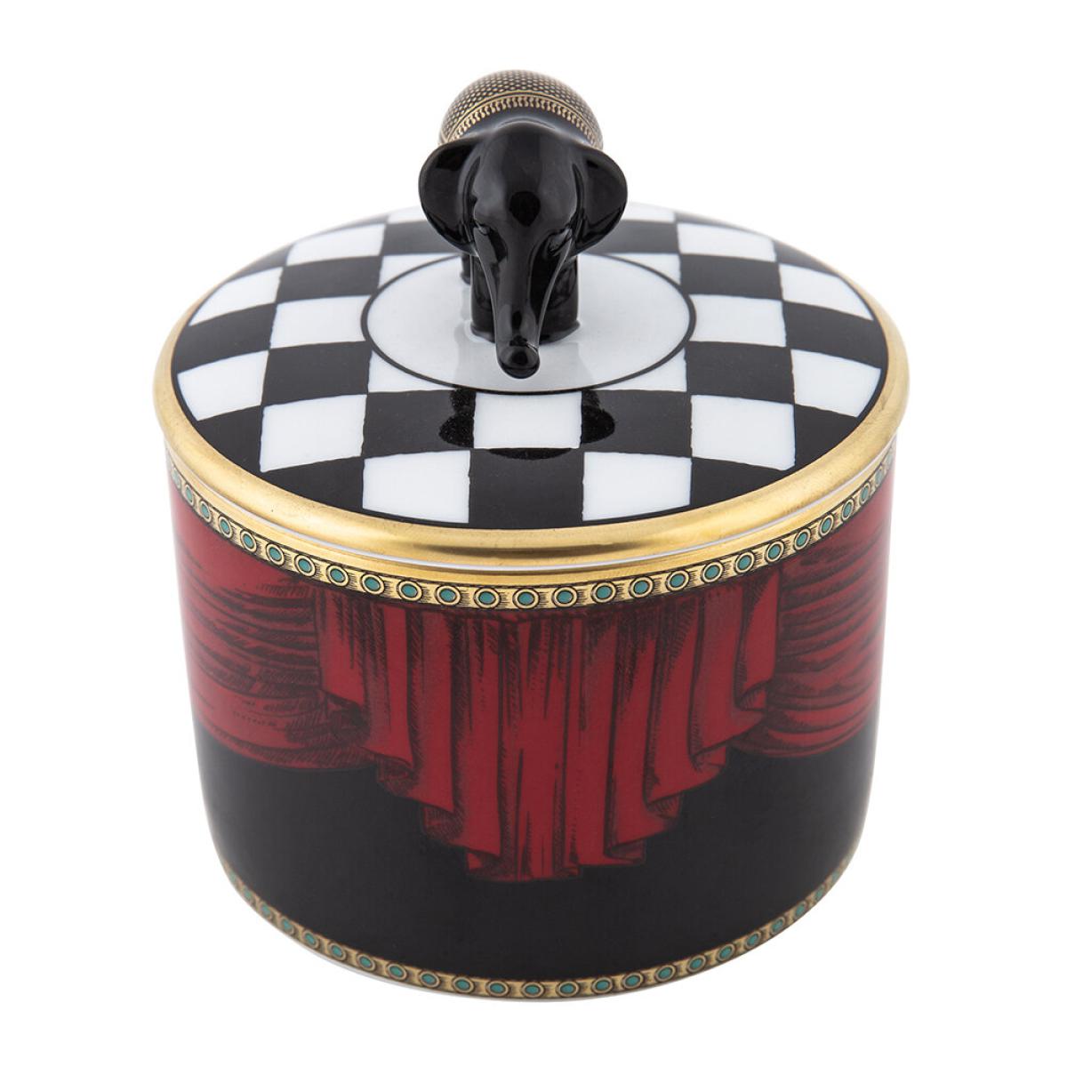 Take a walk on the wild side in your interior with this Totem trinket box from Ginori 1735. Featuring a host of colourful patterns including theatre curtains and checkerboards, it is topped with a charming elephant figurine. Crafted from porcelain, this trinket box has been made in Italy and beautifully hand decorated. Please note, each Ginori 1735 piece is completely unique and has been hand decorated. Because of this slight imperfections and variations can occur, which only add to the charm of the one of a kind pieces.