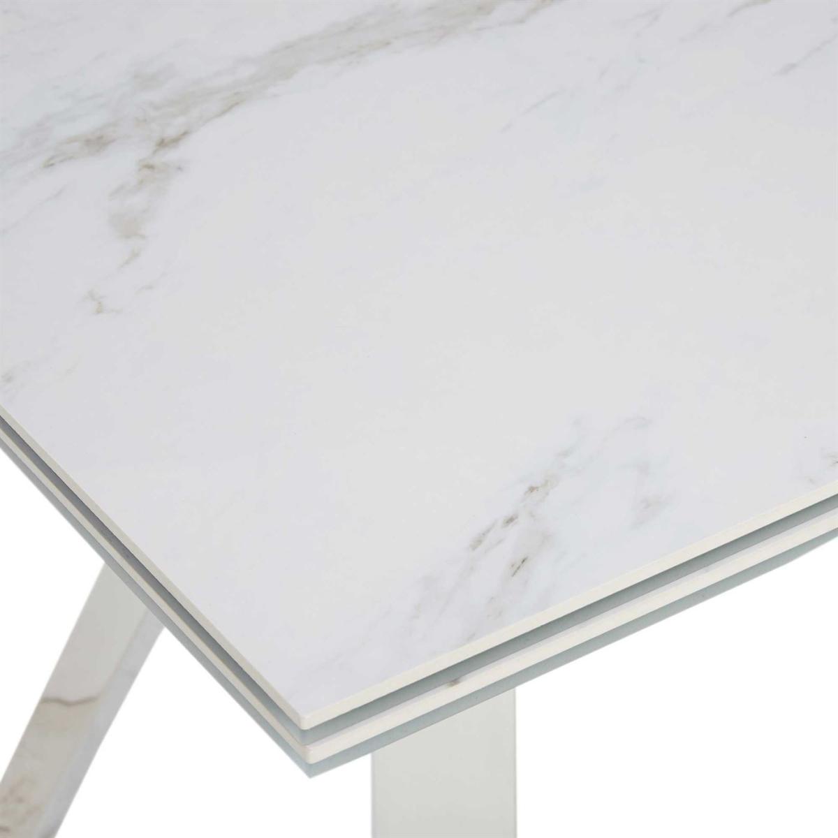 Boasting a sleek and contemporary design, the Ginostra table with its white marble finish is bright and open. Its marble top is crafted from ceramic, providing a stylish and elegant finish thats equipped with stain resistant practicalities. Perfect for your dining room. With the smoothest of actions, the Ginostra seamlessly extends by sliding the leaves hidden beneath out to the surface. Offering spacious dining for up to 8 persons this table will transform any modern home into a luxurious and practical space.