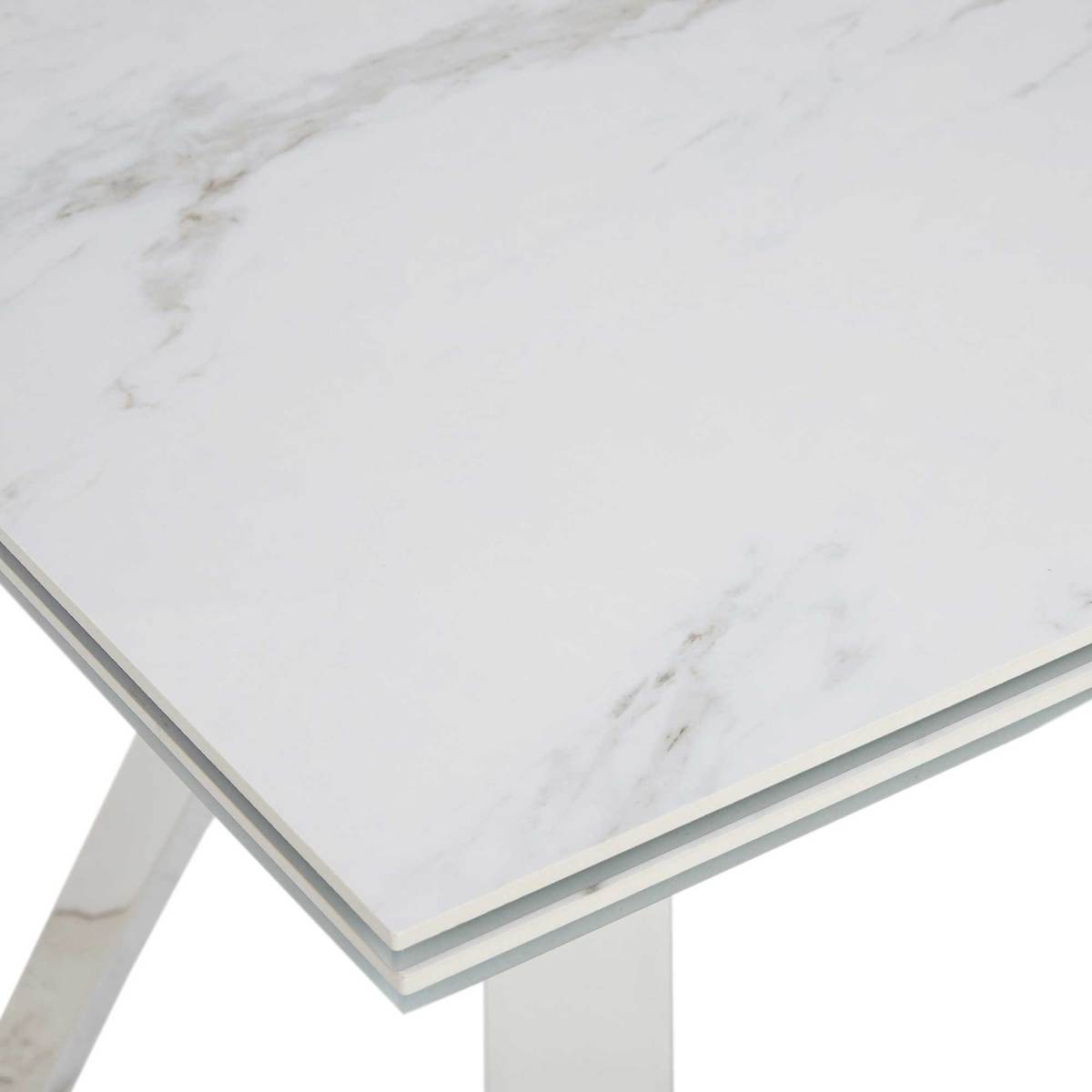 Boasting a sleek and contemporary design, the Ginostra table with its white marble finish is bright and open. Its marble top is crafted from ceramic, providing a stylish and elegant finish that’s equipped with stain resistant practicalities. Perfect for your dining room. With the smoothest of actions, the Ginostra seamlessly extends by sliding the leaves hidden beneath out to the surface. Offering spacious dining for up to 8 persons this table will transform any modern home into a luxurious and practical space.