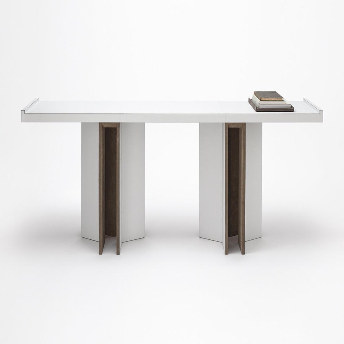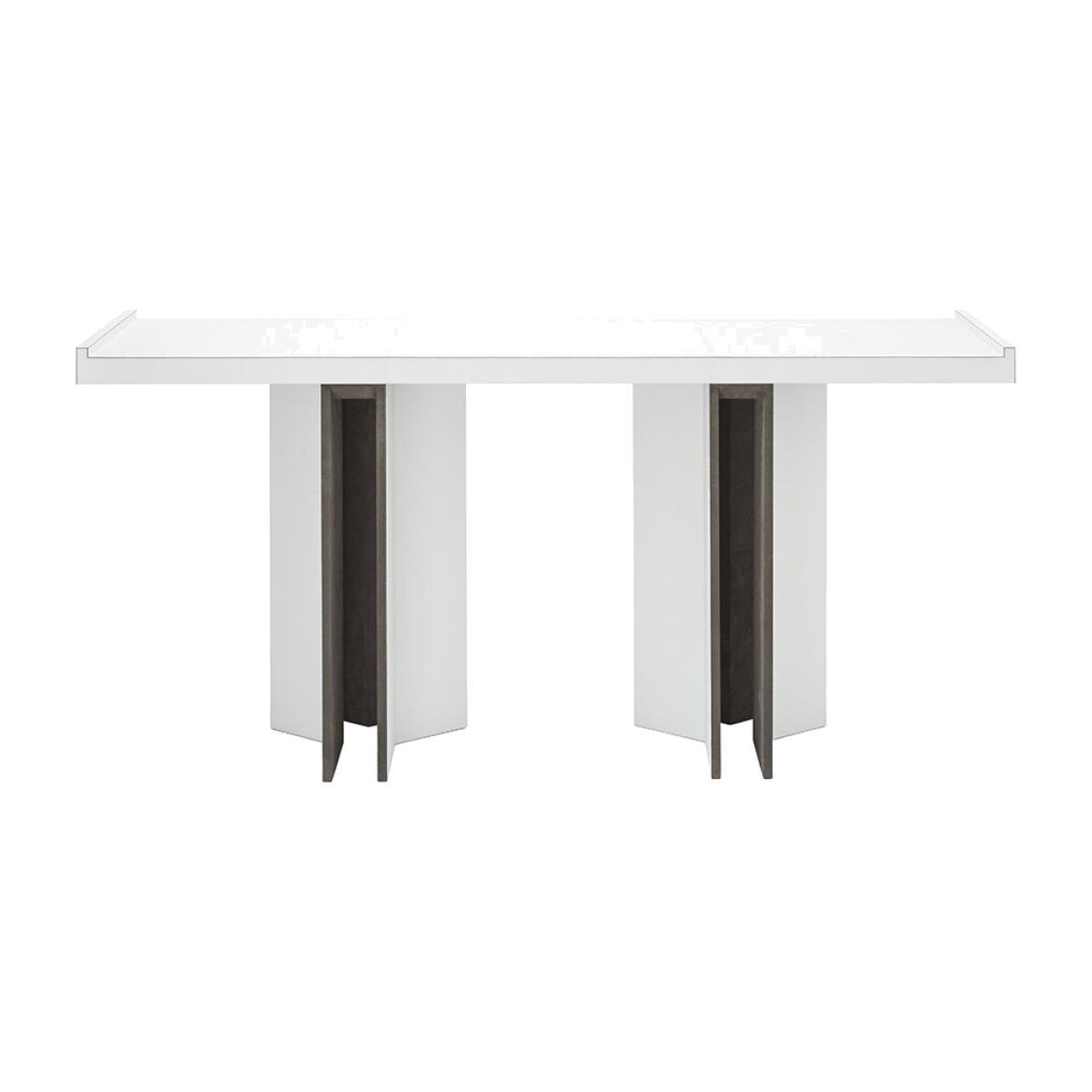 Bring instant style into any space with this Bivio console table from Giobargara. Crafted from solid wood in a crisp white finish, it features two striking legs that are lined with a luxurious grey suede. Handmade in Italy, this stylish table will pair perfectly with any interior decor.