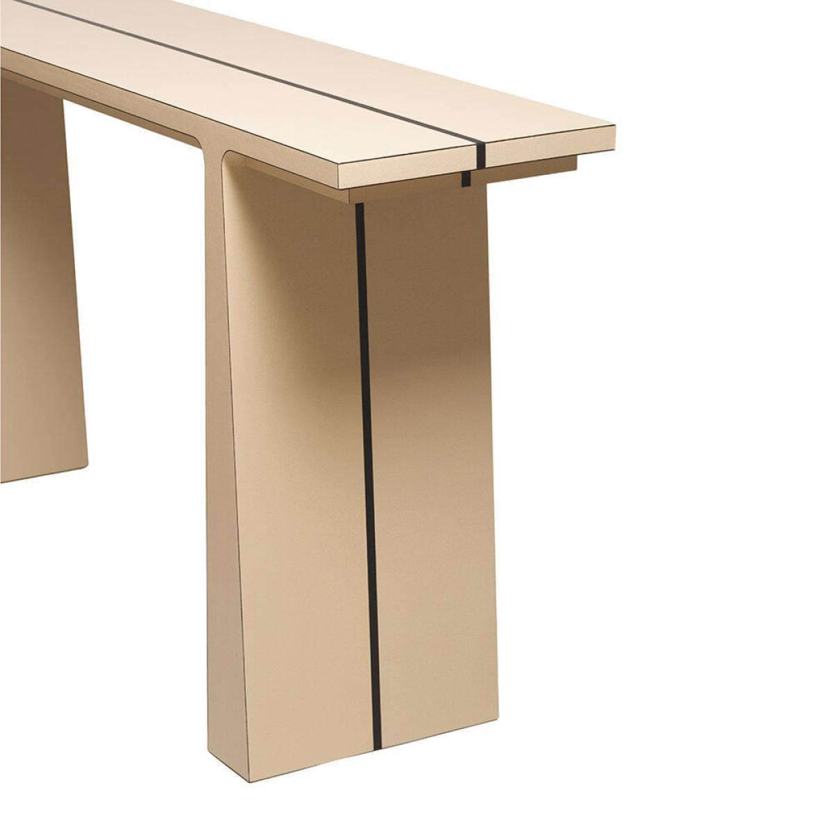 Add instant style to any space with this La Linea console table from Giobagnara. Crafted from solid wood, it features a slightly flared silhouette and is finished with a contrasting leather stripe that runs along the centre of the tabletop and legs. Designed by Stéphane Parmentier, this stylish table will look beautiful with any interior decor.