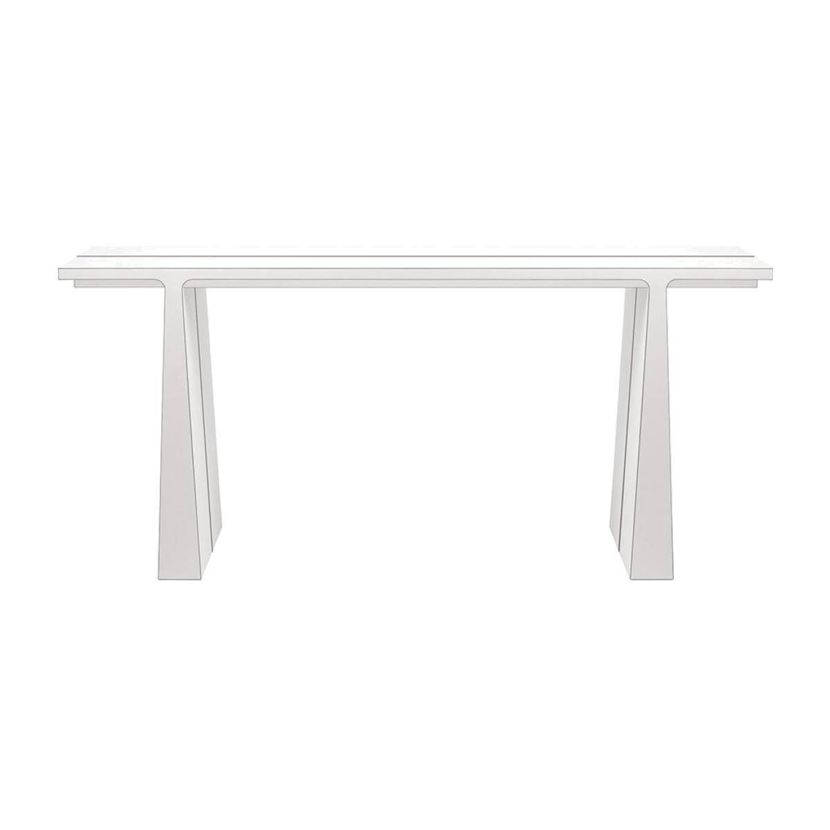Add instant style to any space with this La Linea console table from Giobagnara. Crafted from solid wood, it features a slightly flared silhouette and is finished with a contrasting leather stripe that runs along the centre of the tabletop and legs. Designed by Stéphane Parmentier, this stylish table will look beautiful with any interior decor. Key features: * Material: wood, leather * Dimensions: W200xD40.5xH91cm * Crisp white colour * Sleek and stylish design * Slightly flared silhouette * With a contrasting leather stripe * That runs along the centre of the tabletop and legs * Scratch-proof and water resistant * Designed by Stéphane Parmentier * Handmade in Italy