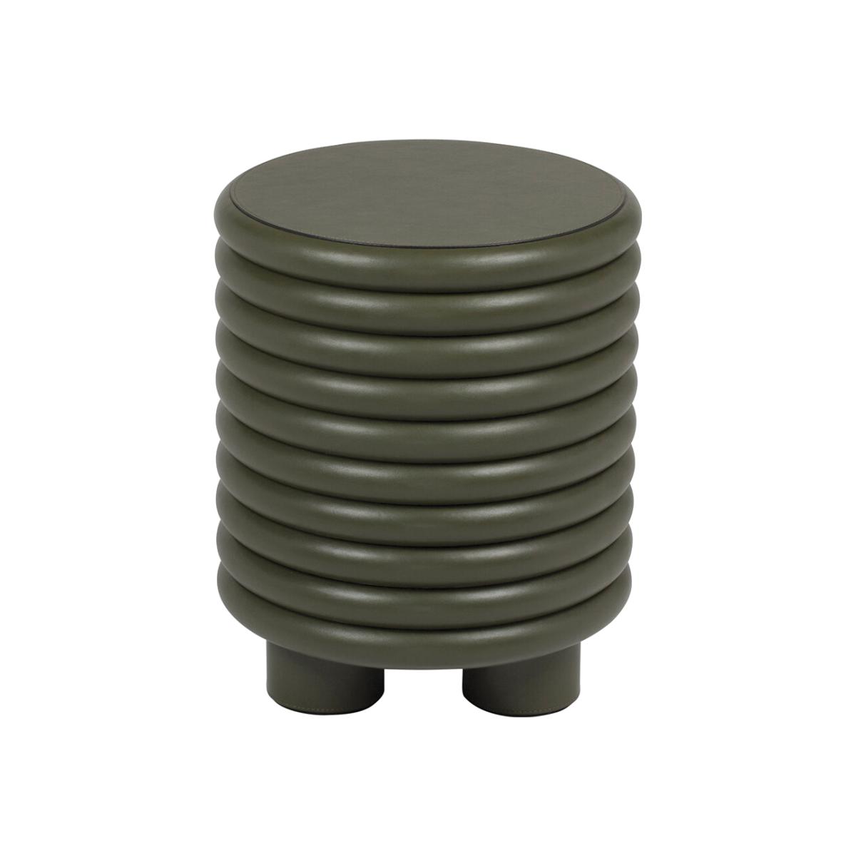 I love this stool's sculptural, tactile design, which makes it a versatile piece for various interiors. Its rich Loden Green leather adds a sophisticated, contemporary edge that works particularly well in modern or minimal spaces, but it can also bring depth to more eclectic or industrial schemes. Practical tips include pairing it with a sleek table for extra seating, or using it as a side table in a lounge or bedroom. The rounded, ribbed form lends itself to layering within a mix of textures-think velvet cushions or soft throws-creating an inviting, curated look. Its compact size makes it ideal for small spaces, where it can serve multiple functions without crowding the room.