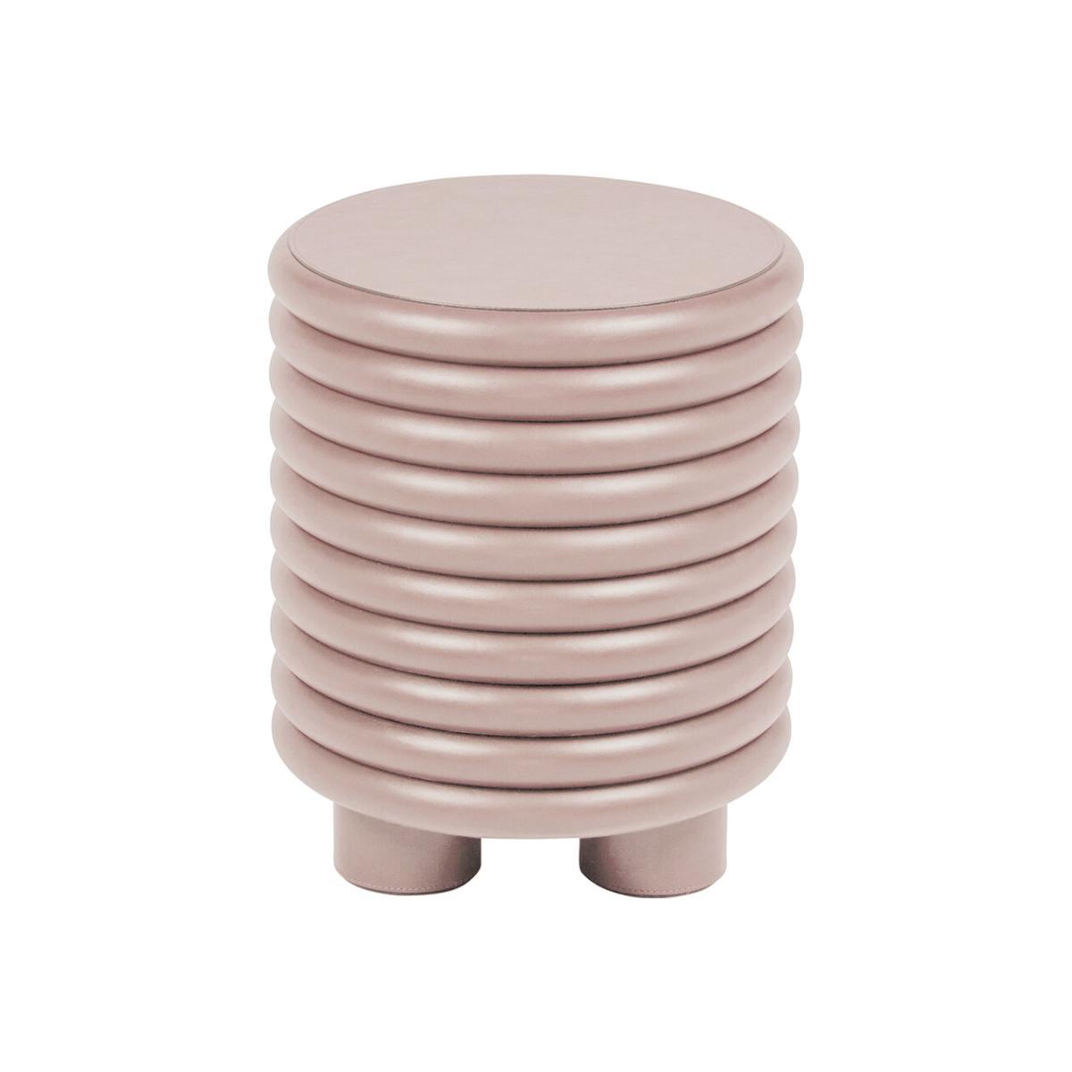 I love this stool for its sleek, contemporary profile and subtleised texture, thanks to the leather finish. It works particularly well in modern or minimal interiors, adding a hint of softness and sophistication. Its neutral nude hue makes it versatile enough to complement colour palettes ranging from soft pastels to bold, contrasting tones. Practical styling tips include using it as a side table, a footrest, or even an occasional seat in bedrooms, living areas, or walk-in wardrobes. Pair it with other leather accents or textured materials to create a cohesive and layered look. Its sculptural shape makes it a standout piece that combines form and function effortlessly.