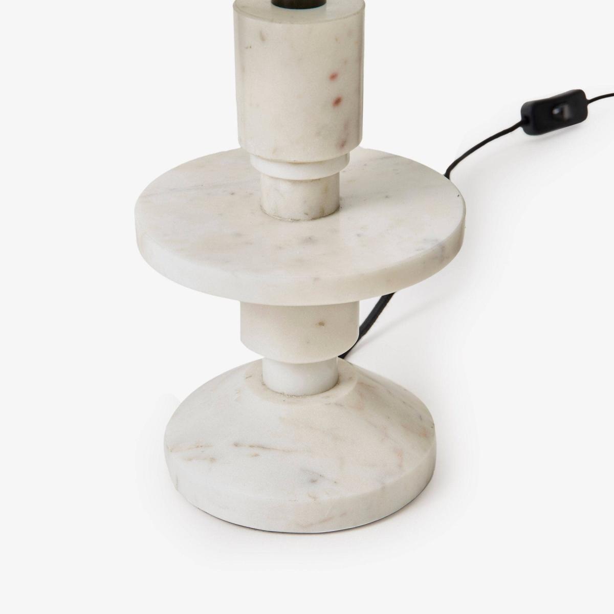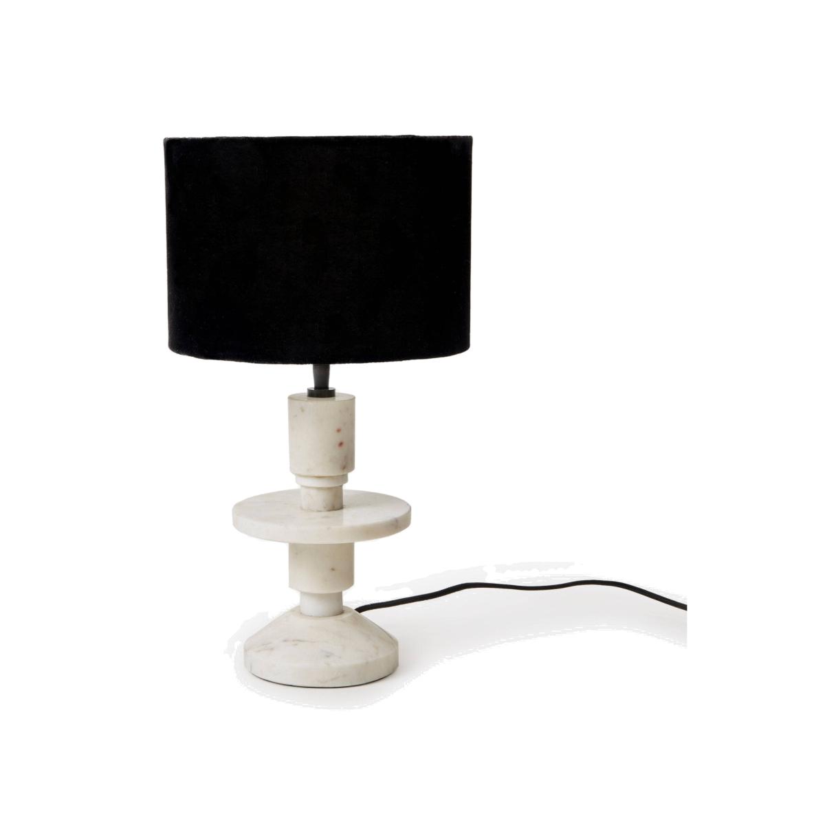 Our solid marble Gioia table lamp creates a calming ambience, perfect for a minimalist or boho interior. The rich marble and modern shape make this lamp great in pairs, anchoring a sidetable or console. Gioia's eye-catching, distinctive organic design adds a layer of calmness and balance while illuminating a room. Its velvet lampshade gives this otherwise simple, contemporary design a hint of luxury.