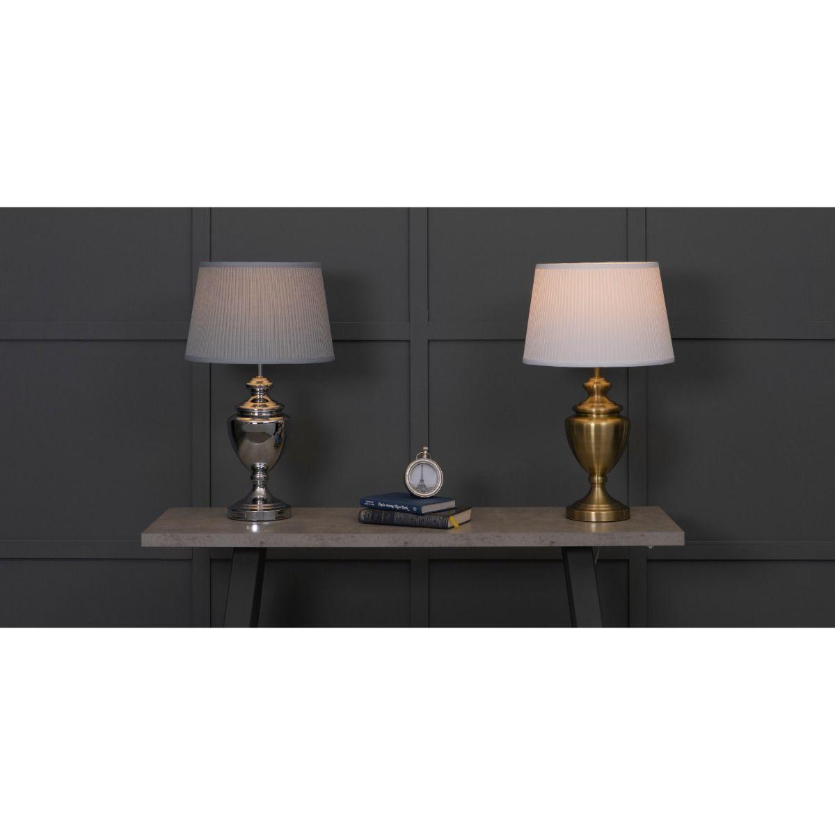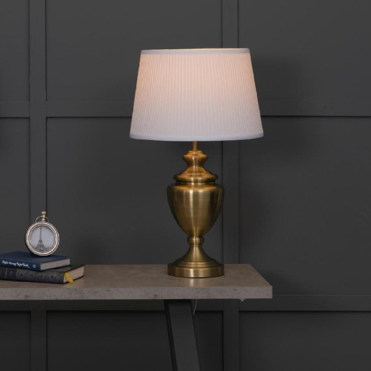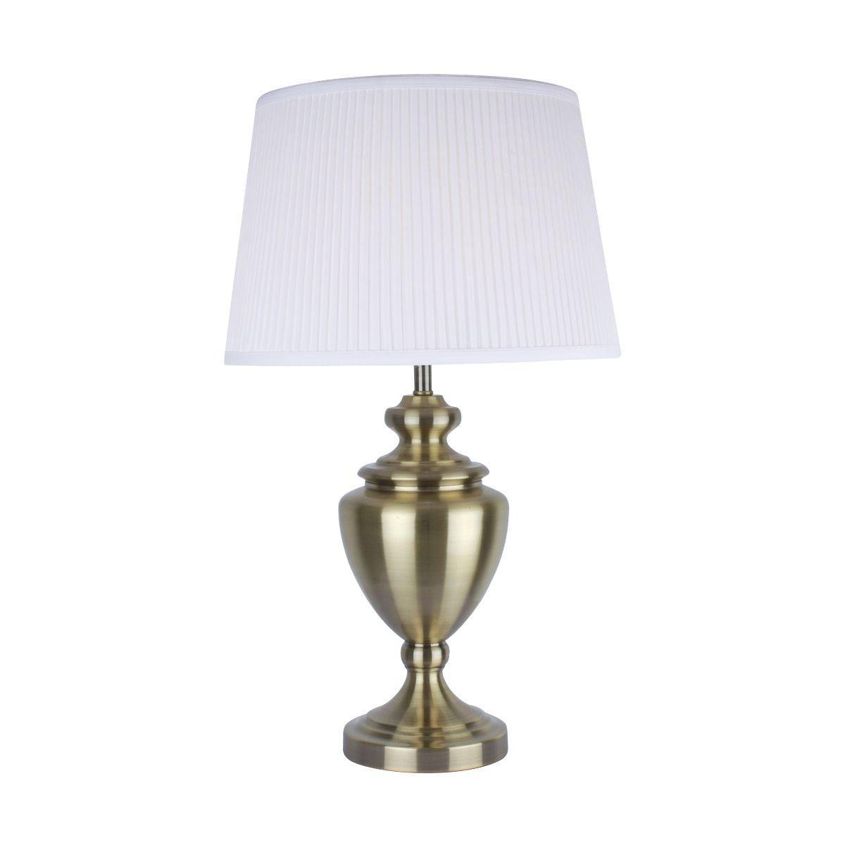 Gorgeous traditional table lamp with pleated shade This classic pressed metal urn lamp is finished in antique style brushed brass. The tapered ivory cotton shade has a soft box pleat outer and white PVC liner. The Giona is perfect for a hallway or living room that boasts traditional fittings. Style this light with one of our vast selection of LED E27 light bulbs Gorgeous traditional table lamp with pleated shade This classic pressed metal urn lamp is finished in antique style brushed brass. The tapered ivory cotton shade has a soft box pleat outer and white PVC liner. The Giona is perfect for a hallway or living room that boasts traditional fittings. Style this light with one of our vast selection of LED E27 light bulbs