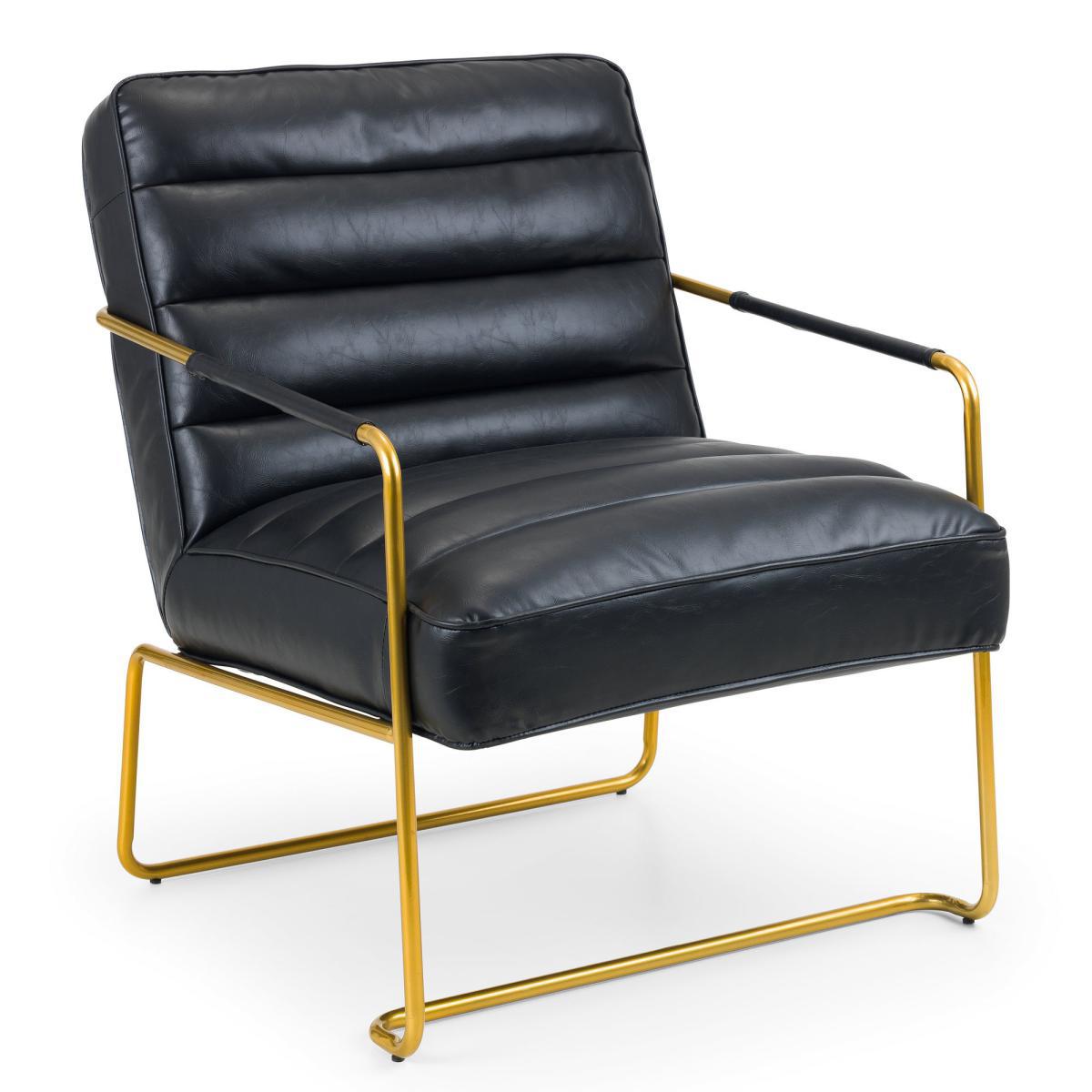 The Giorgio Faux Leather Chair is the perfect statement piece to incorporate modern and industrial elements to your home. Whether its placed in the office or the lounge, this chair is sure to make a statement. Upholstered in a beautiful faux leather fabric with intricate stitched detailing, complete with a deep foam padded seat and backrest for an amazingly comfortable and supported sit. The Giorgio chair is exquisitely finished with a metal frame structure and slick gold hardware that enhance the design as well as add additional strength and durability, which makes this the perfect addition for any home.