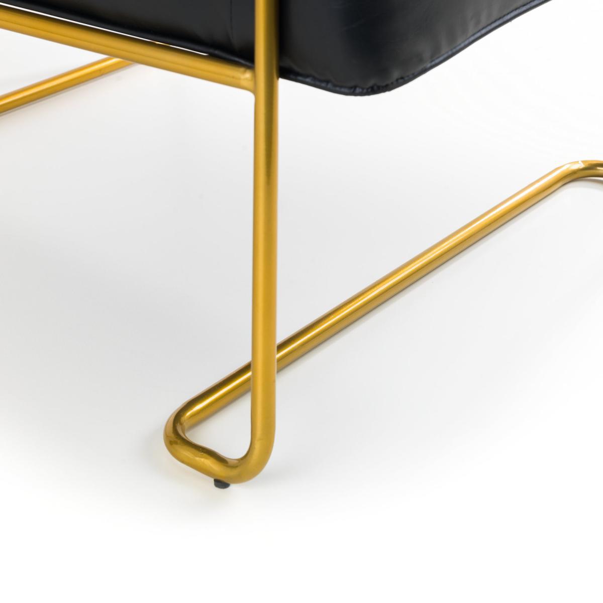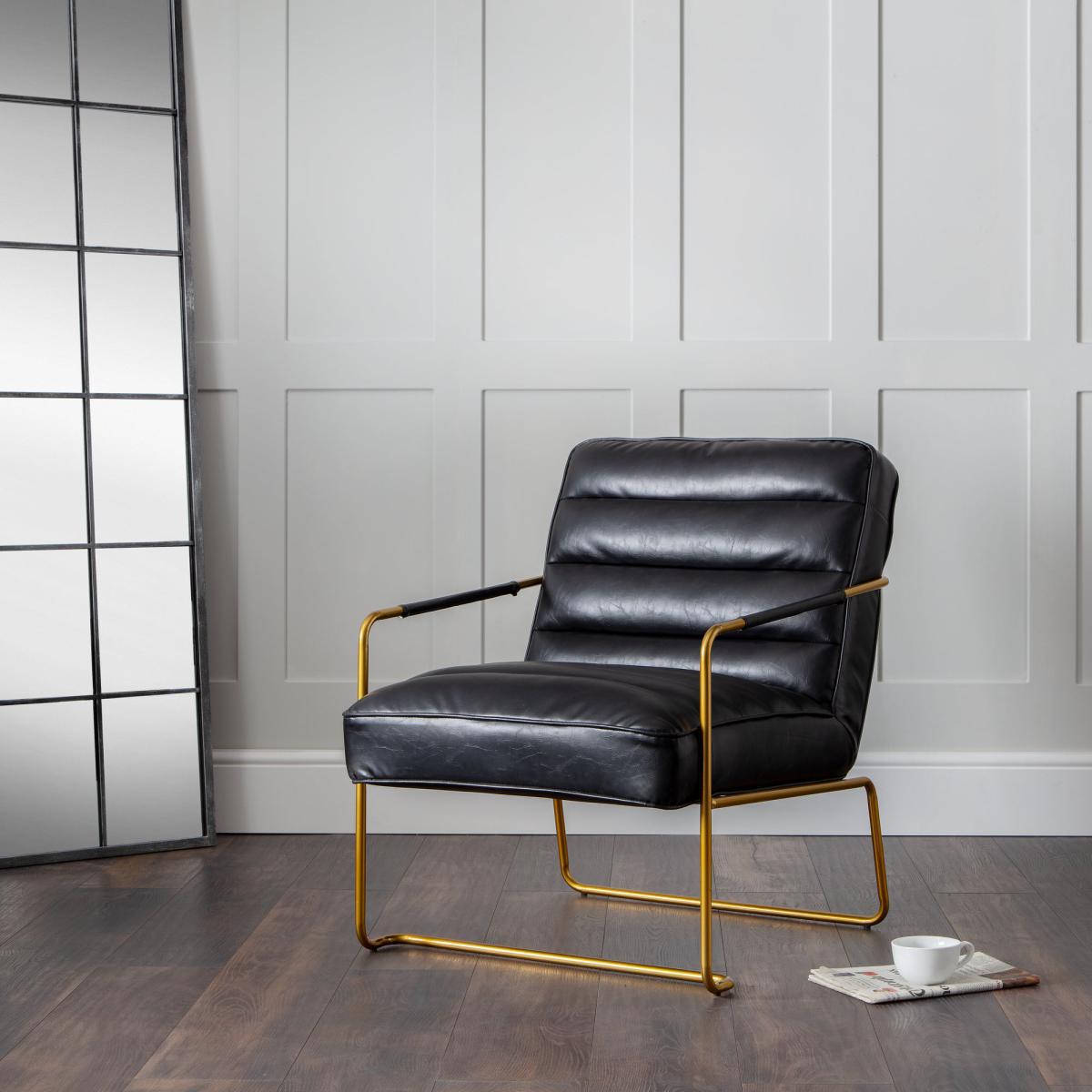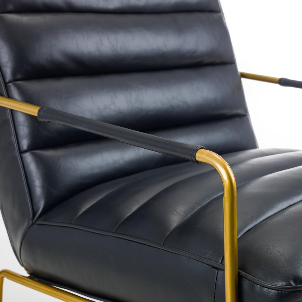 I think the black faux leather chair is a smart addition to many interiors, thanks to its sleek and contemporary look. It works particularly well in modern and minimalist spaces, where its clean lines and subtle metallic frame add a touch of sophistication without overpowering the room. It's also a practical choice, as the faux leather surface is easy to clean and maintains its appearance over time. For styling tips, try pairing it with neutral-toned sofas or layered textiles in textures like wool or velvet to soften the overall look. It can also serve as a statement piece in a corner, providing both comfort and style in a reading nook or home office.