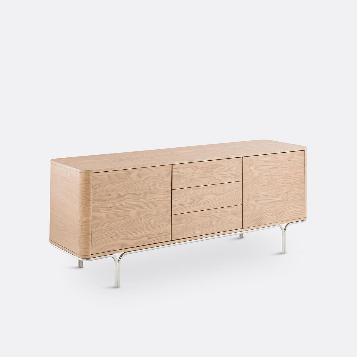 Giorgio Oak Veneer & Chrome Steel 2-Door, 3-Drawer Sideboard