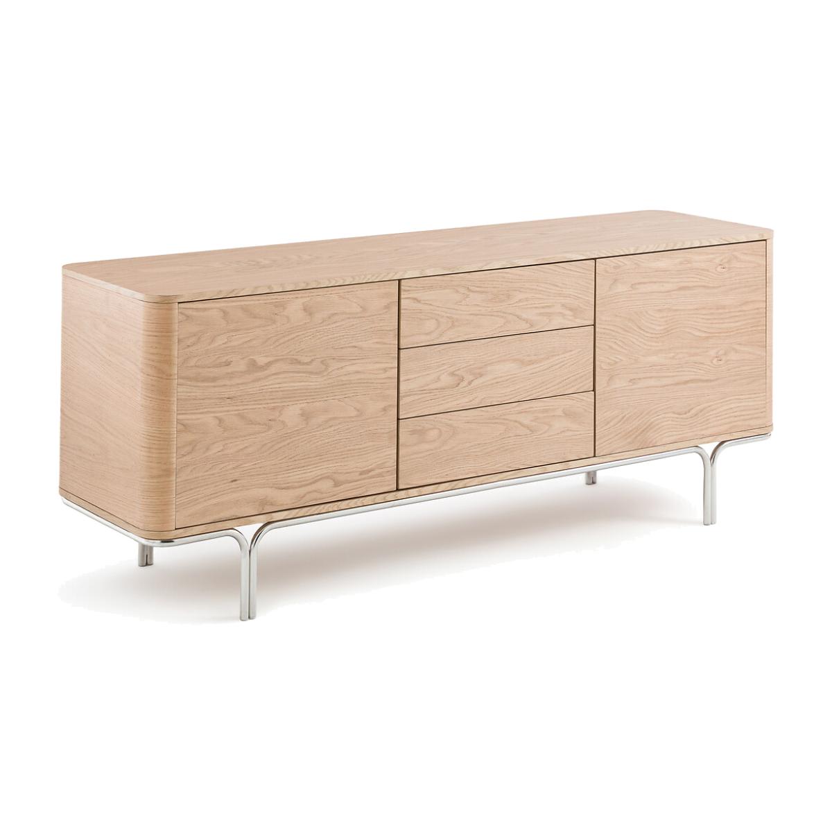 Clean, curved lines. Generous dimensions. A combination of light oak veneer and chrome steel. The contemporary Giorgio sideboard has plenty of storage space to accommodate crockery and table linens.